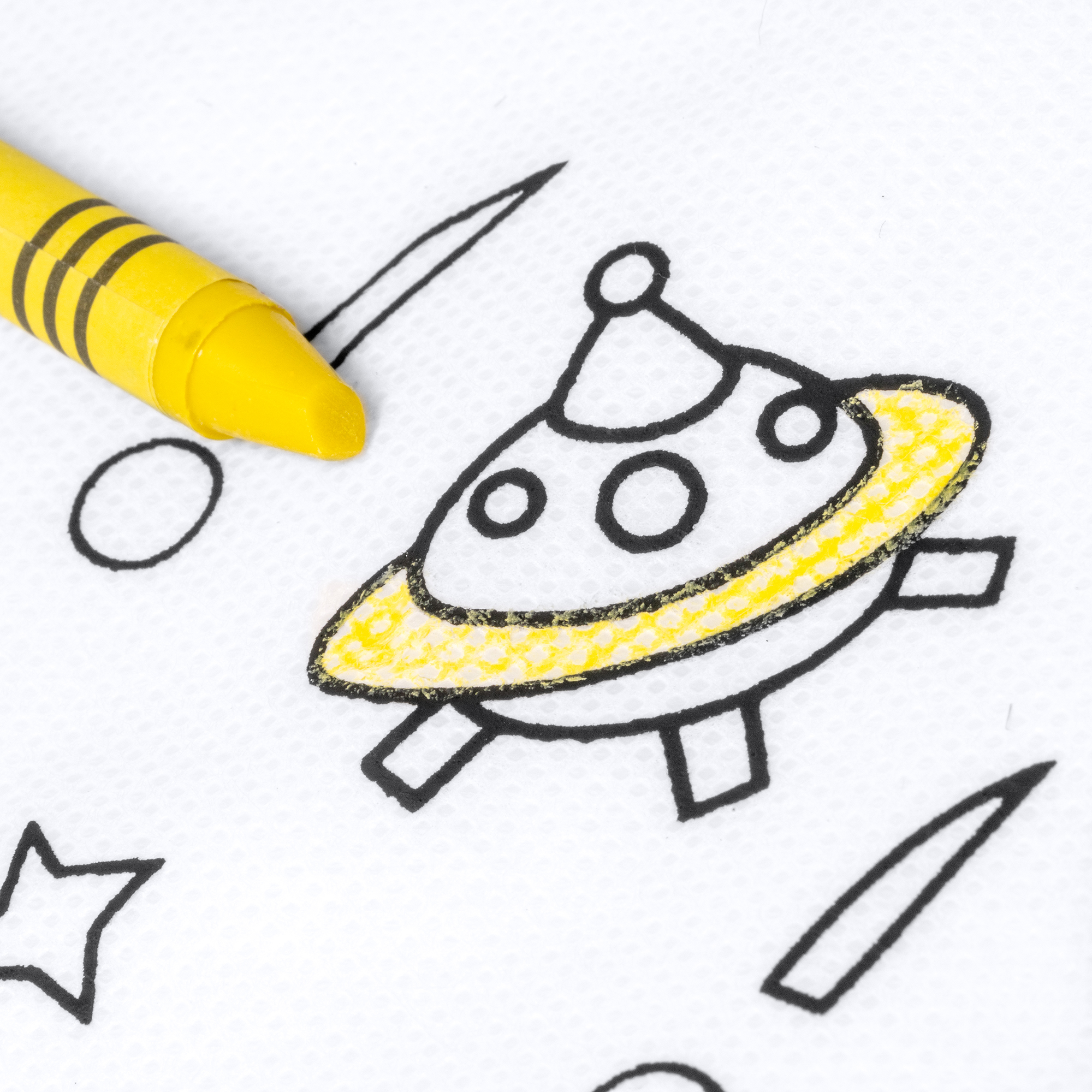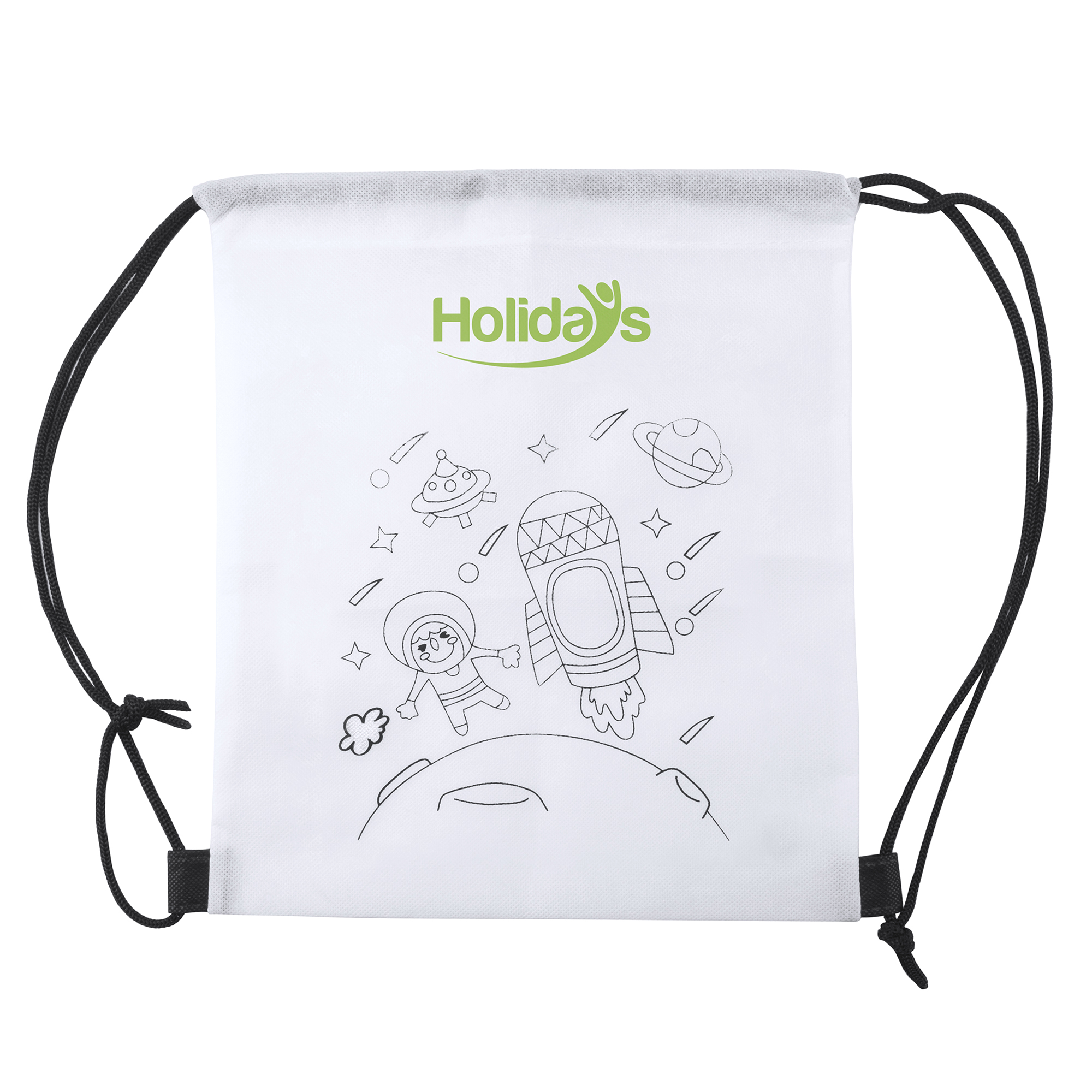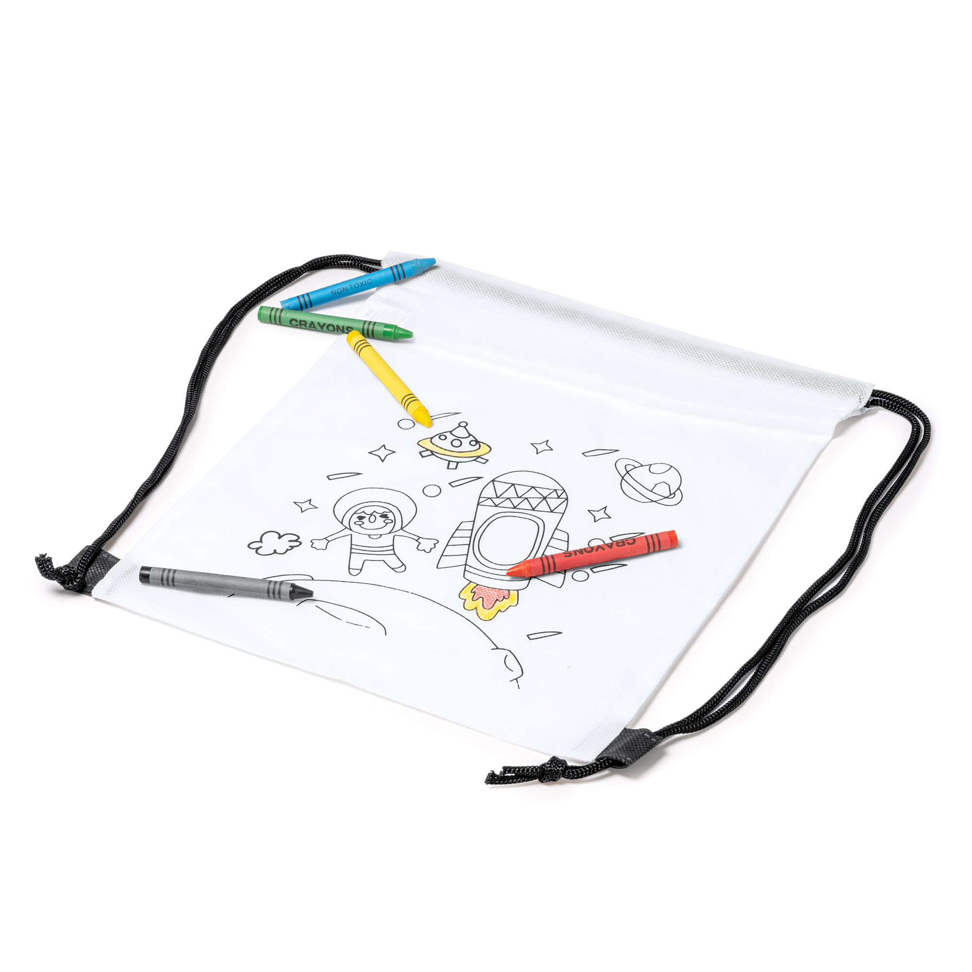 Rucsac pentru copii confecționat din material non-woven cu desene ce pot fi colorate. Include 5 culori din ceară.