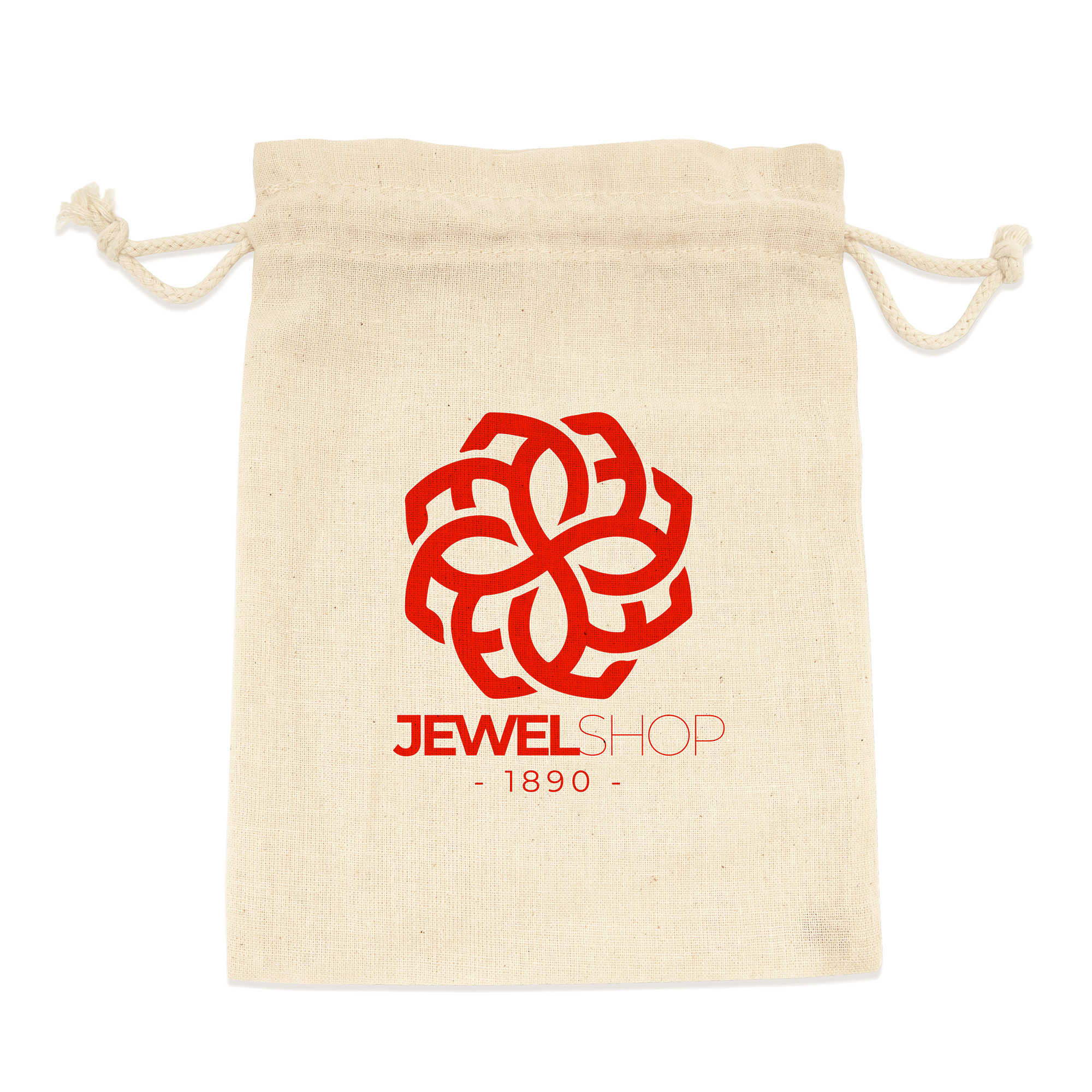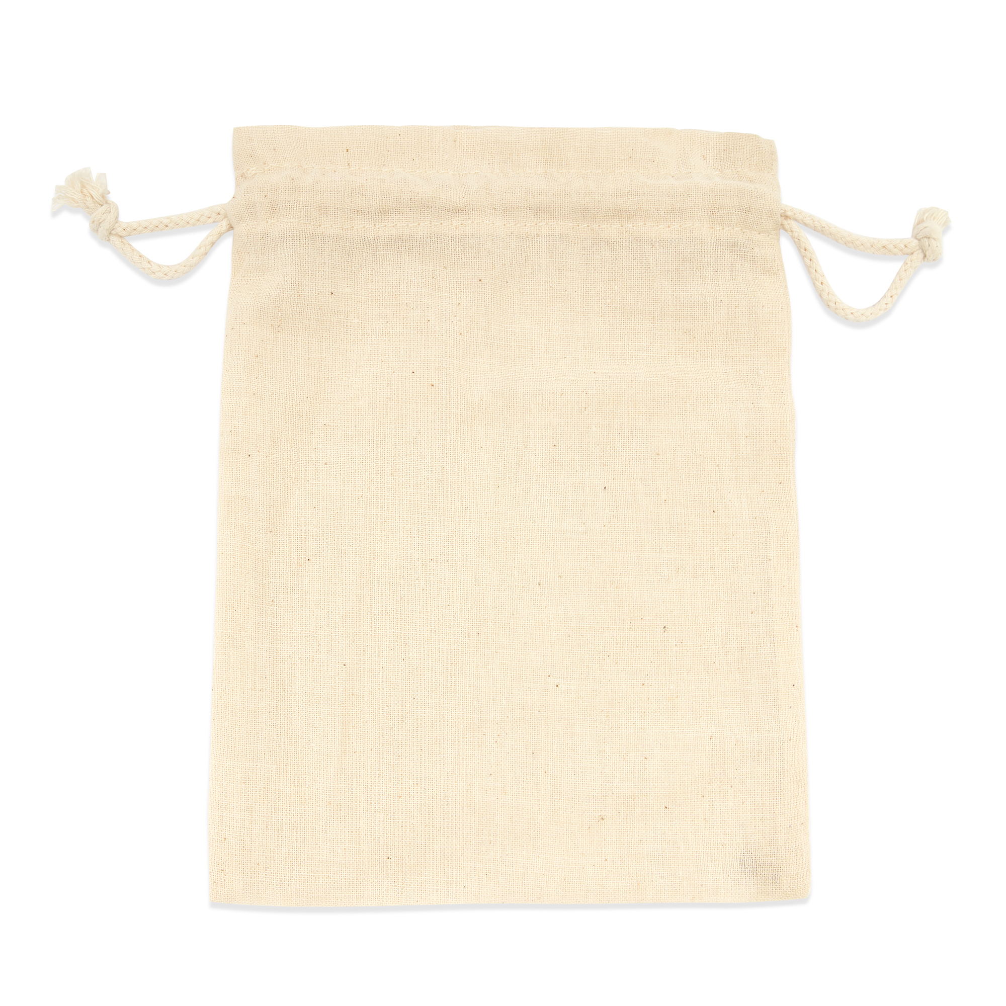 Săculeț din bumbac de 105 g/m², cu șnururi de închidere.