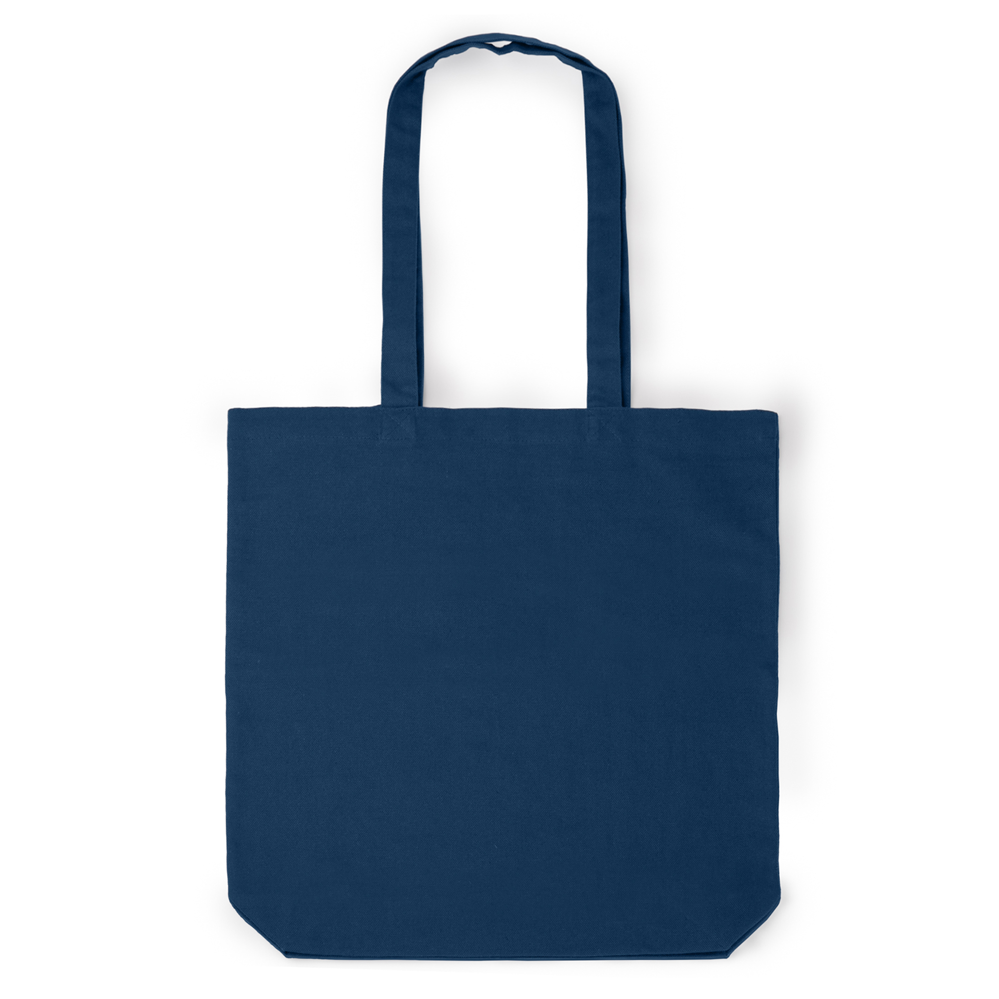 Geantă colorată din bumbac organic 100% de 270 g/m², cu îmbinare la bază. Curele de 70 cm.
