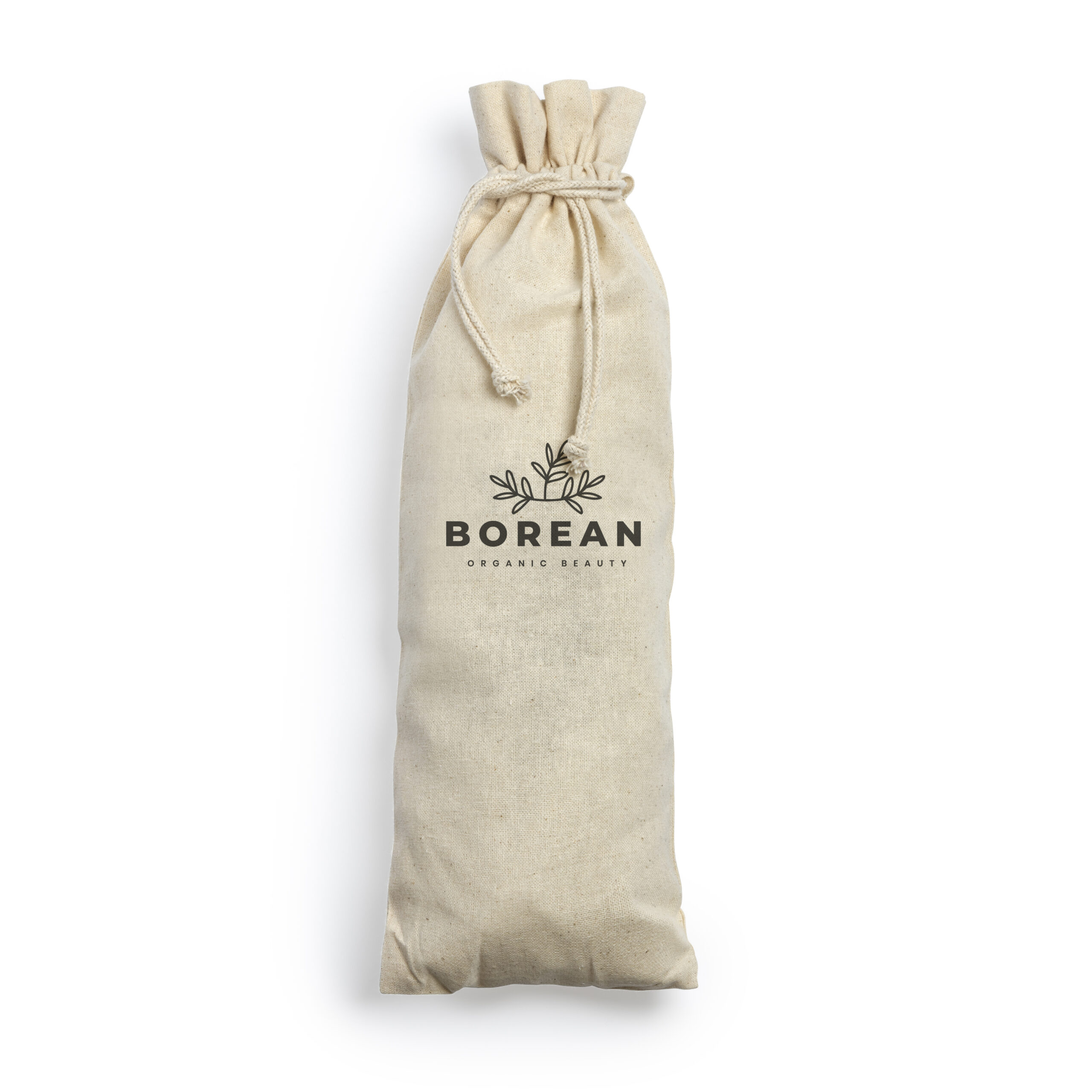 Pungă cu șnur din bumbac de 120 g/m². Perfectă pentru sticle sau termosuri.