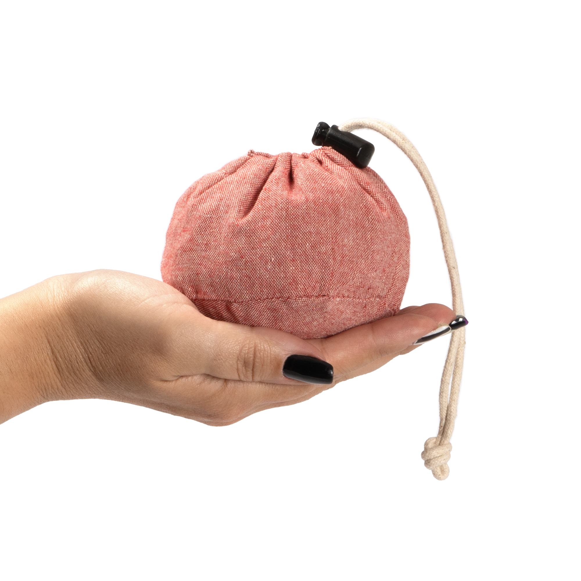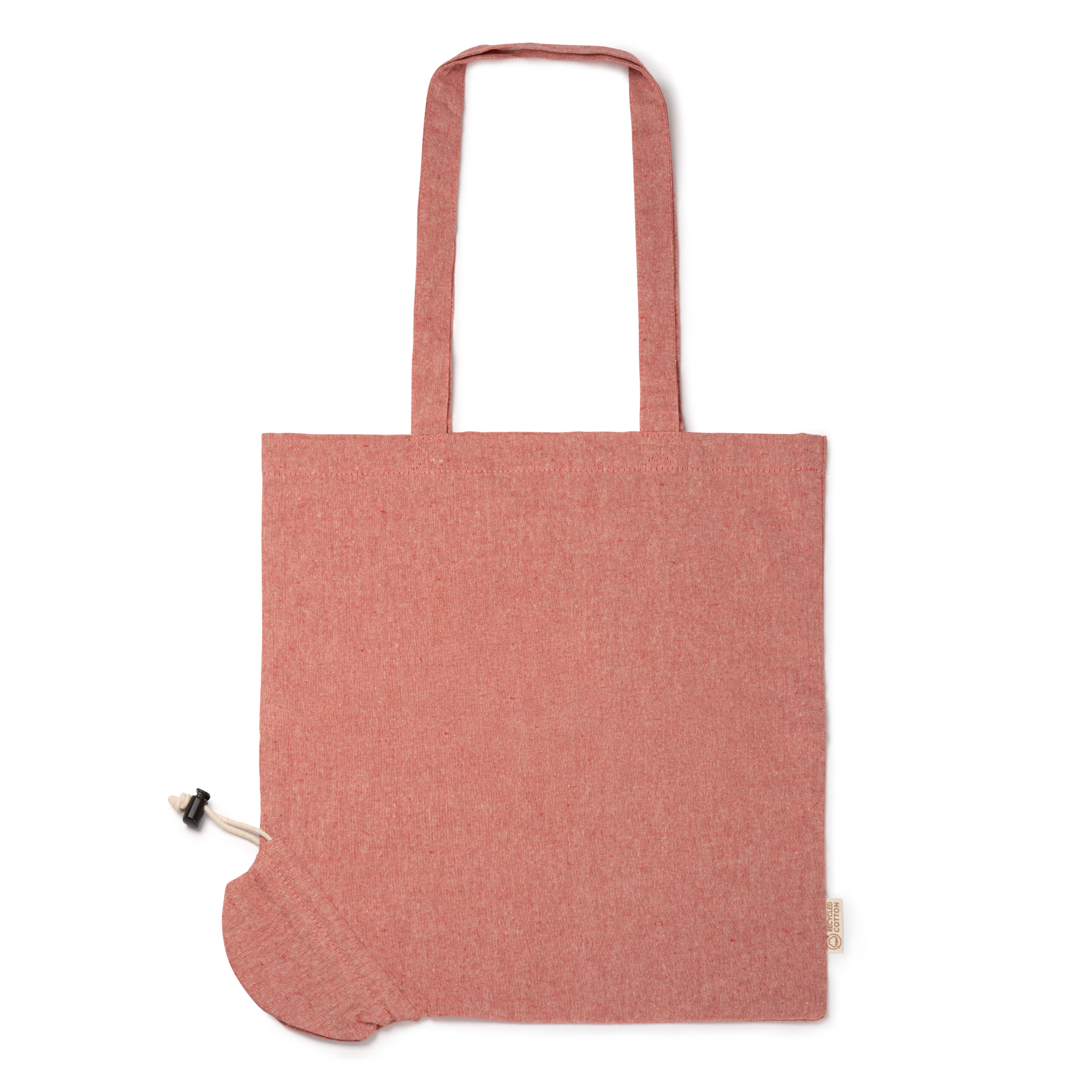 Geantă pliabilă din bumbac reciclat de 120 g/m², curele lungi de 70 cm și șnur pentru pliere reglabilă.