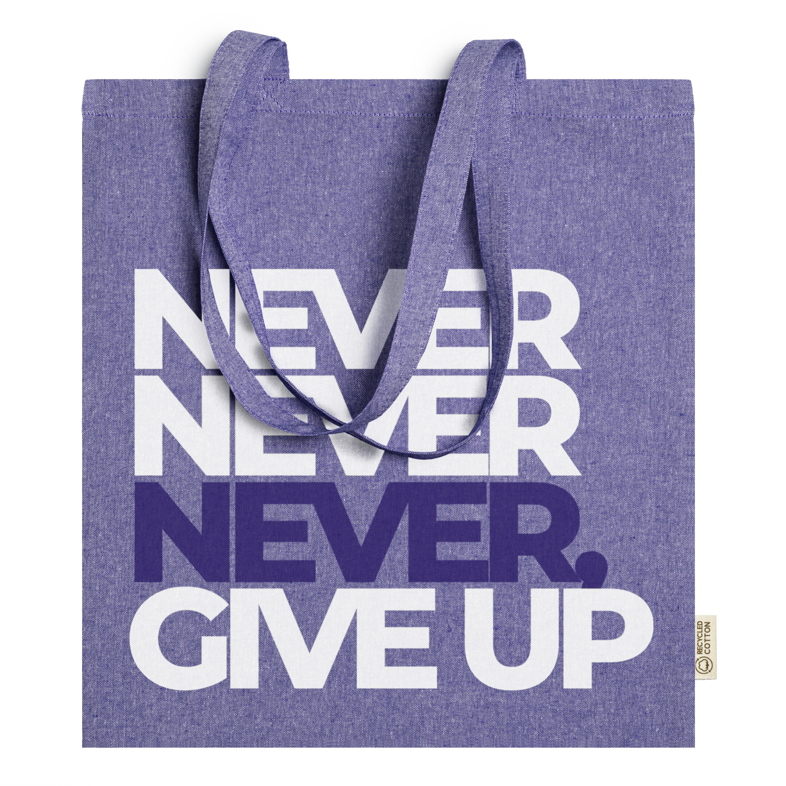 Sacoșă bumbac reciclat, de 120 g/m², în culori melanj, cu mânere largi de 70 cm.