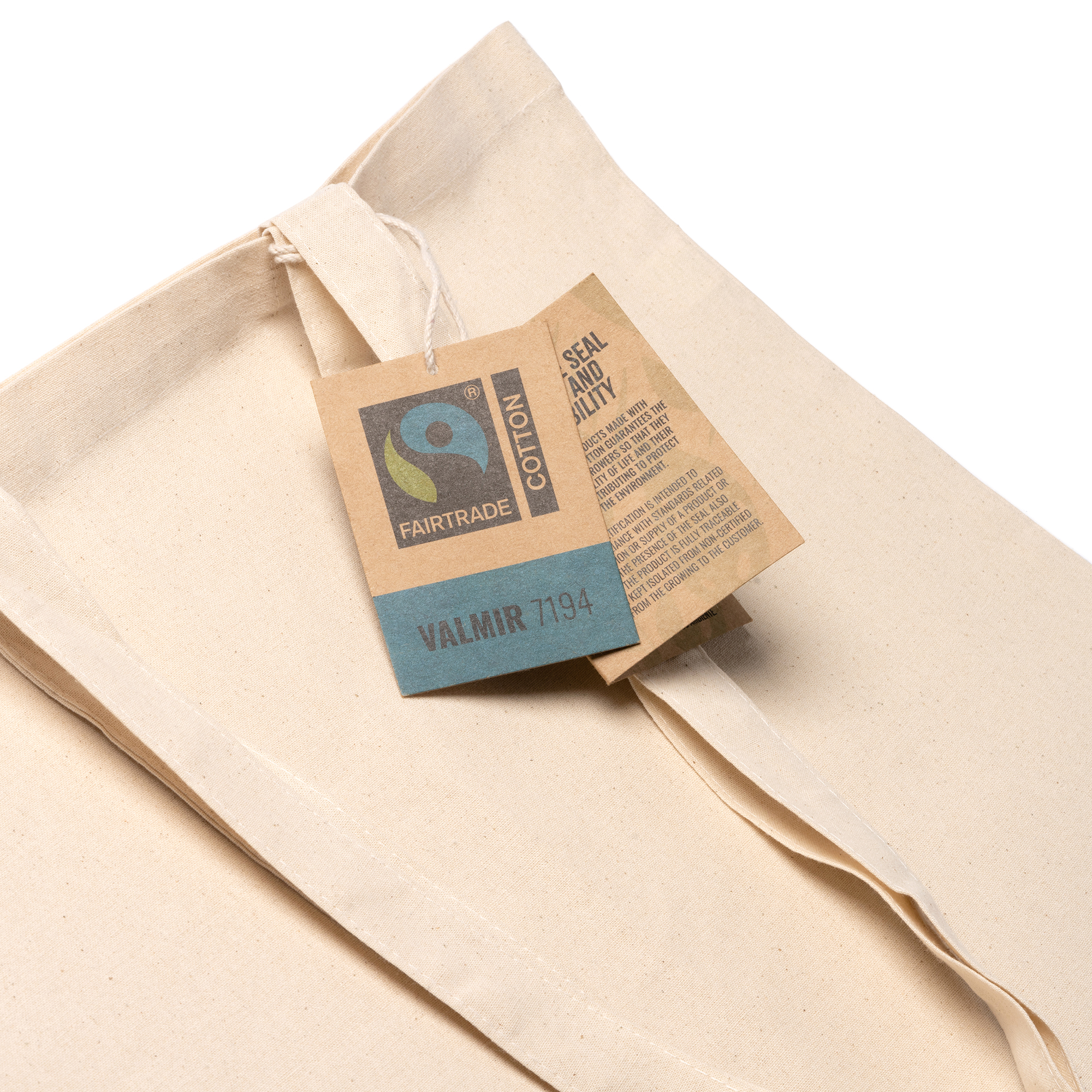 Geantă de umăr din bumbac Fairtrade 100% (180 g/mp), cu mânere lungi ranforsate de 70 cm.