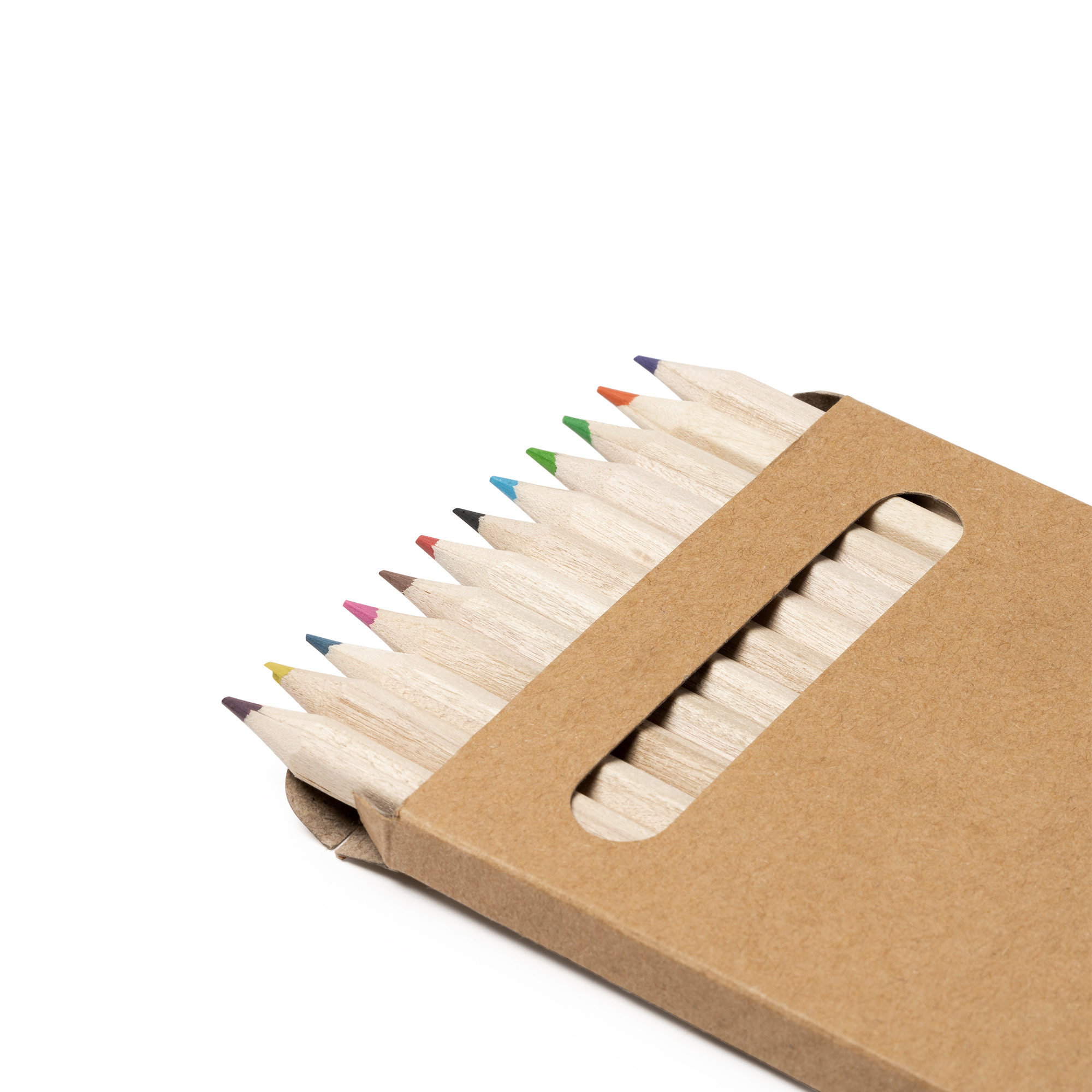 Set de 12 creioane din lemn într-o cutie de carton reciclată.