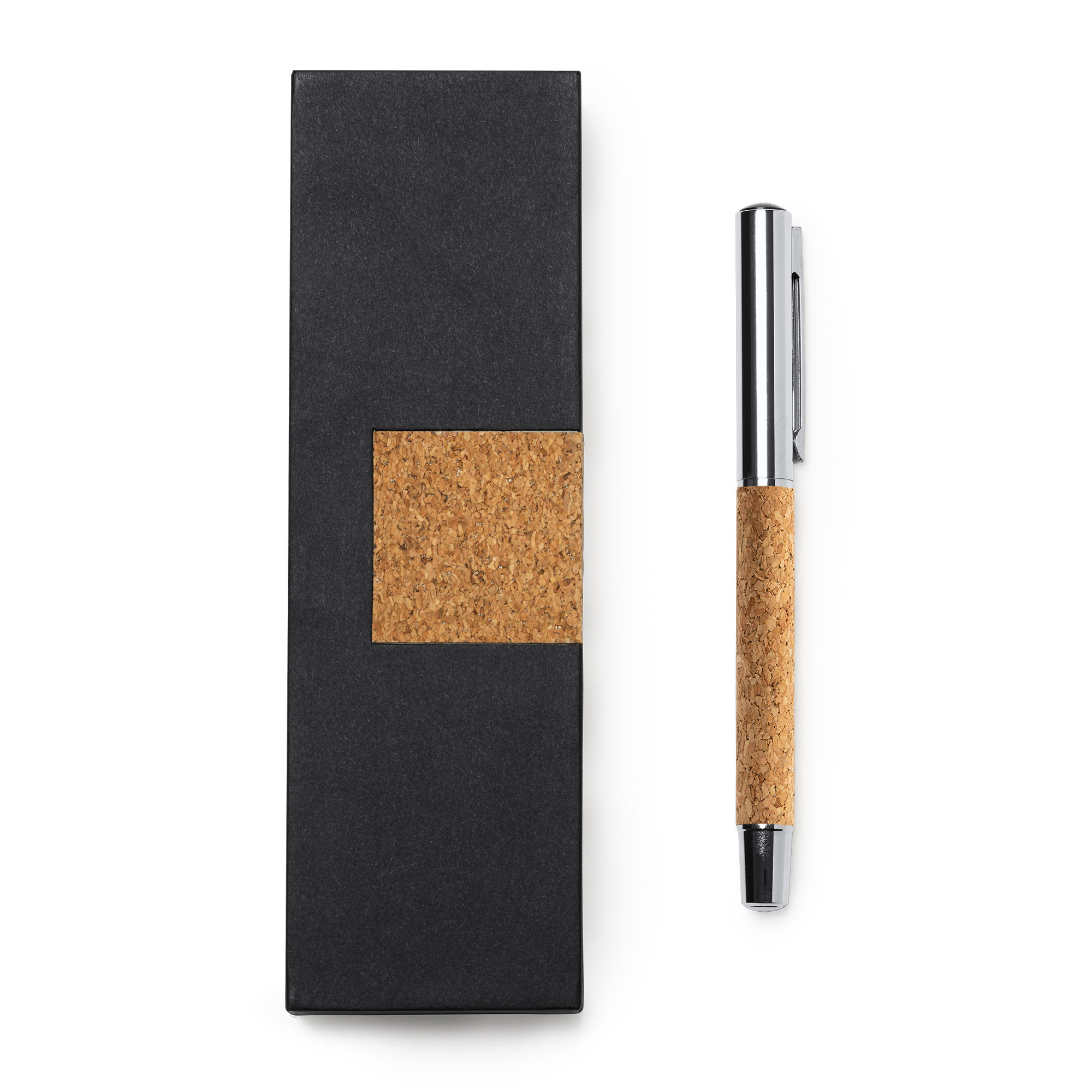 Stilou cu rolă din plută naturală și oțel. Prezentare într-o cutie elegantă din plută combinată cu căptușeală interioară.