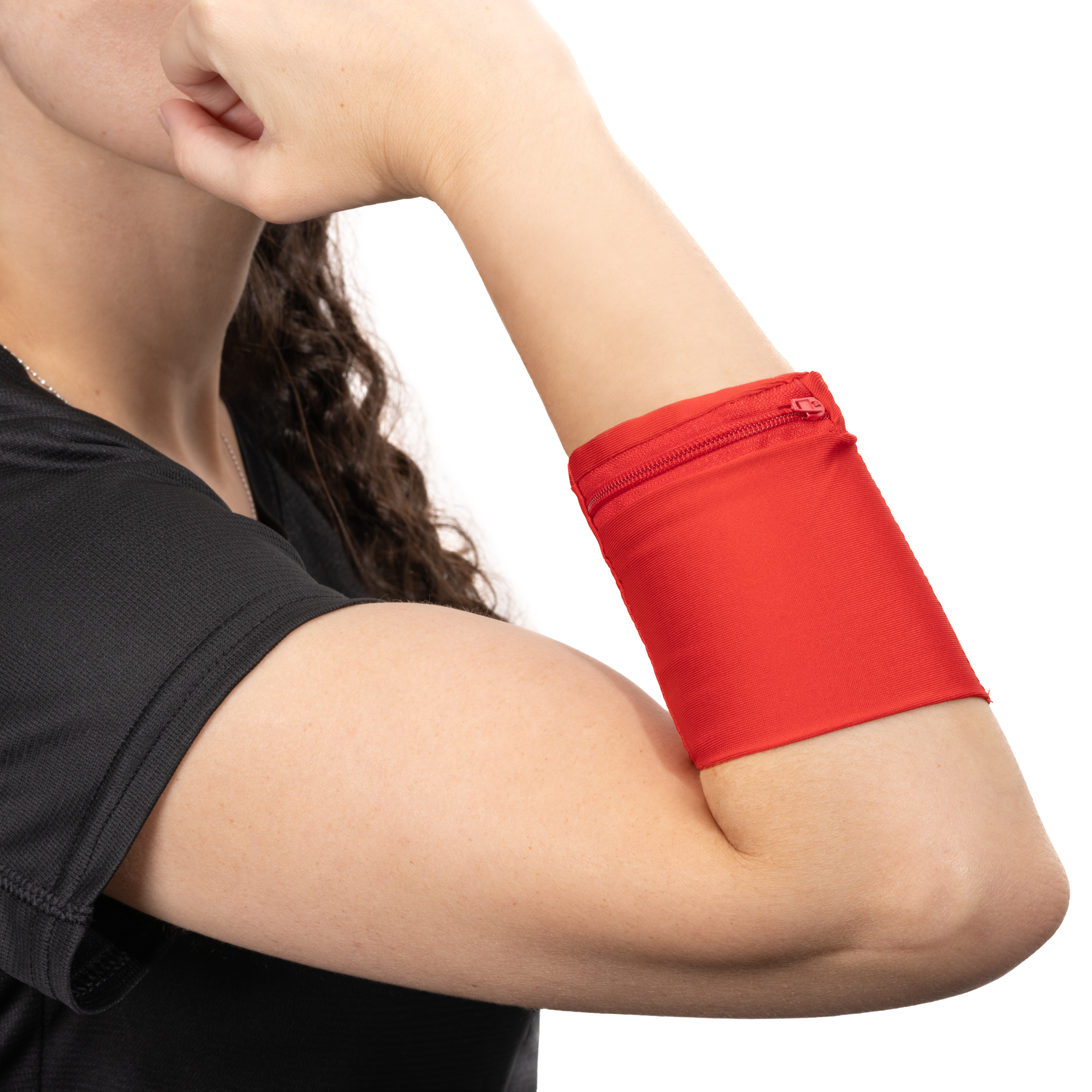 Brățară pentru încheietura mâini, elastică și cu buzunar asortat cu fermoar.