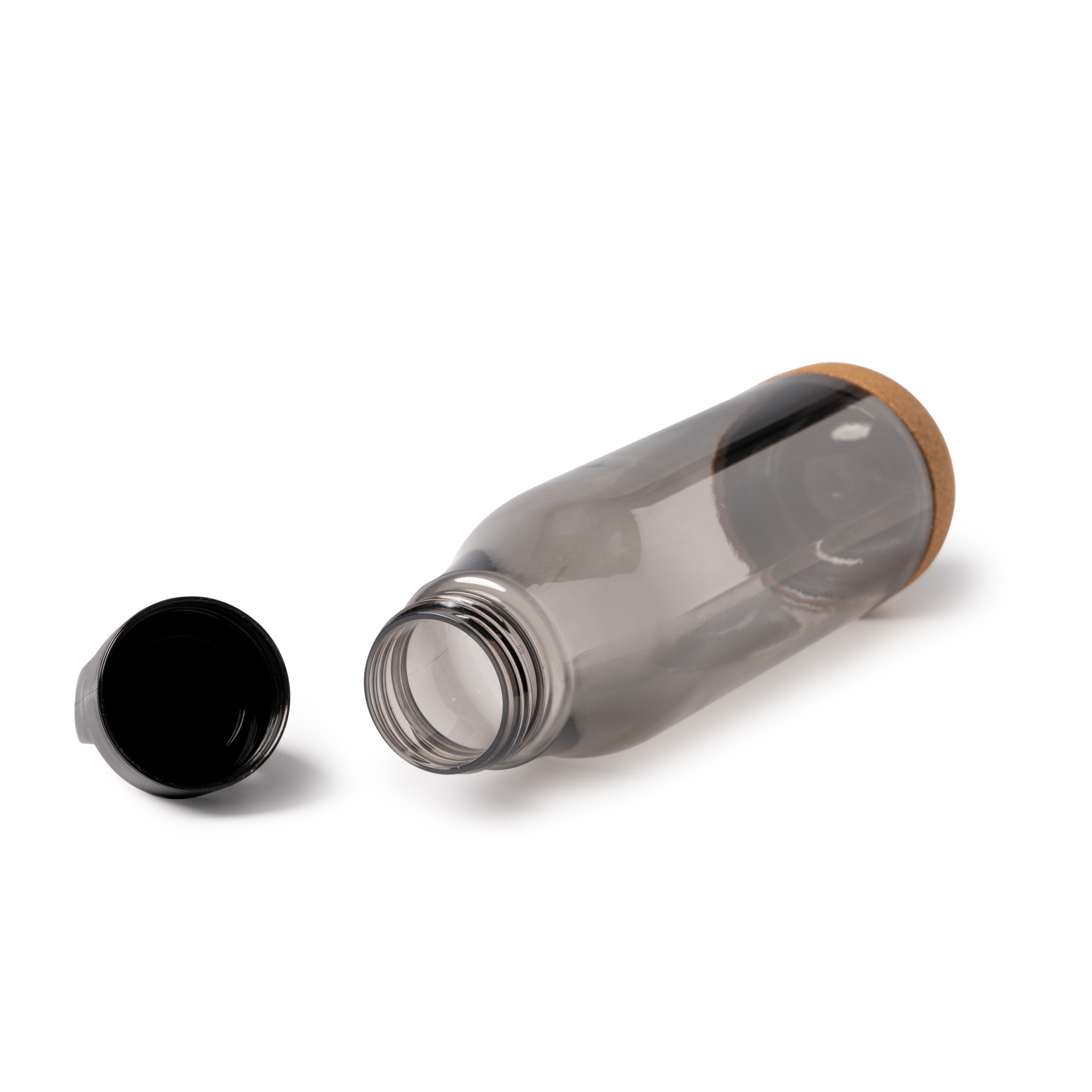 Sticlă cu corp RPET și bază din plută. Mâner de transport cu carabină pe capac. Capacitate: 720 ml. Mod de prezentare: în cutie cu model eco.