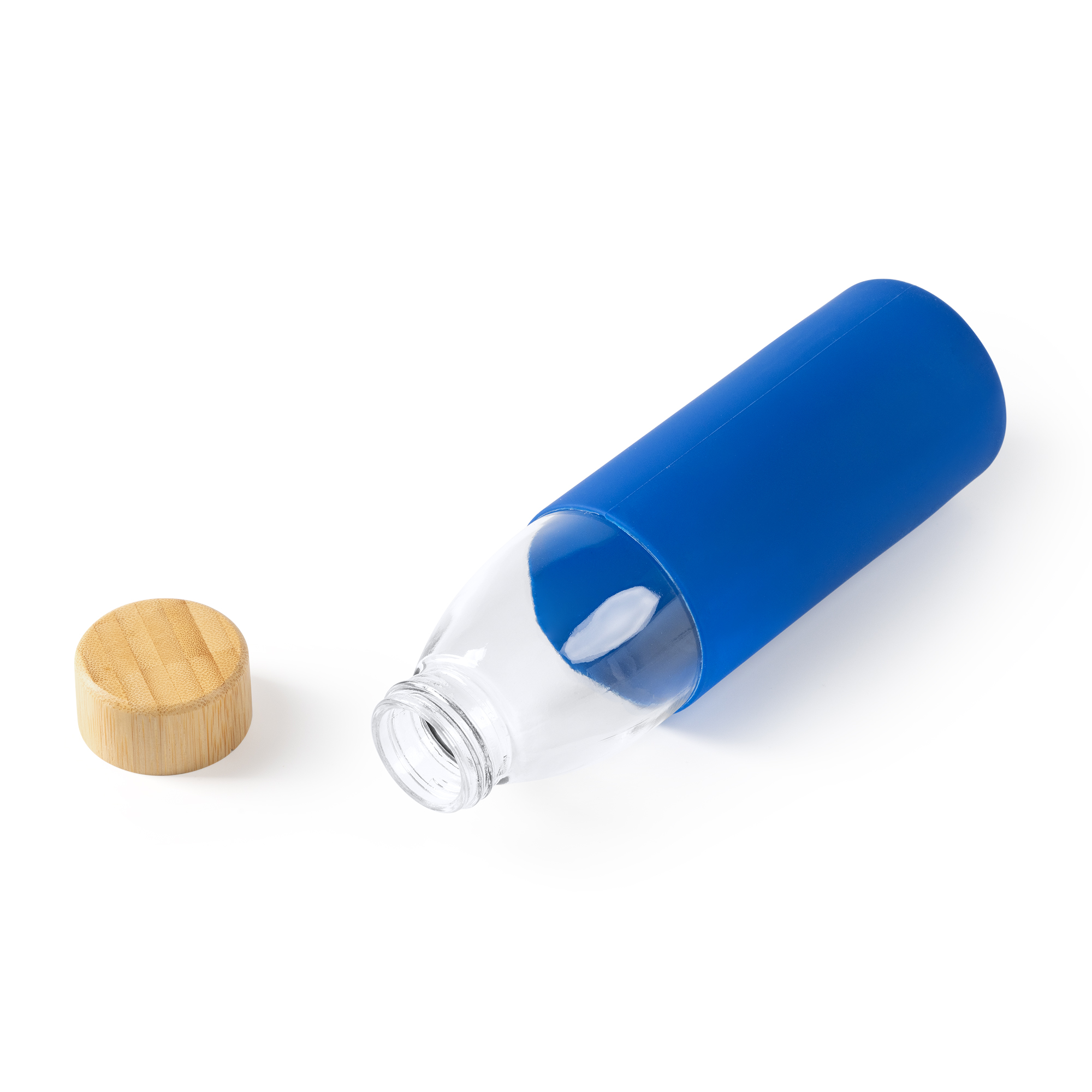 Sticlă cu capac din bambus și carcasă din silicon, în cinci culori diferite. Capacitate de 540 ml. Perfectă pentru a vă surprinde clienții și pentru a vă promova afacerea.