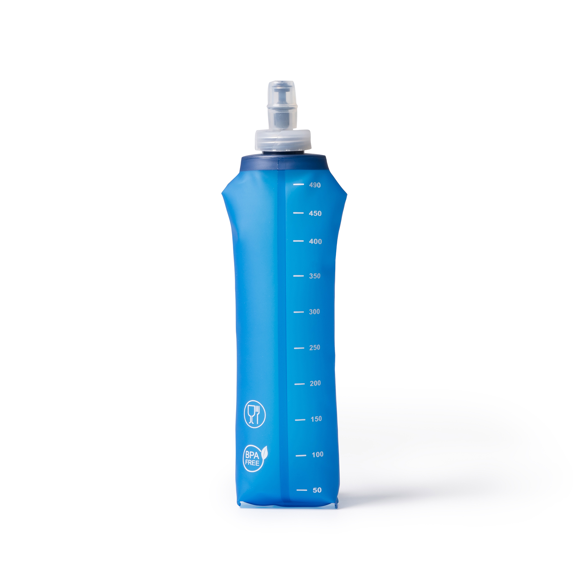 Sticlă pliabilă pentru transportul băuturilor într-un mod practic în timpul evenimentelor sportive. Datorită formatului său flexibil din TPU, această sticlă de 500 ml este ușor de transportat în mână și ocupă puțin spațiu în rucsac sau haină.