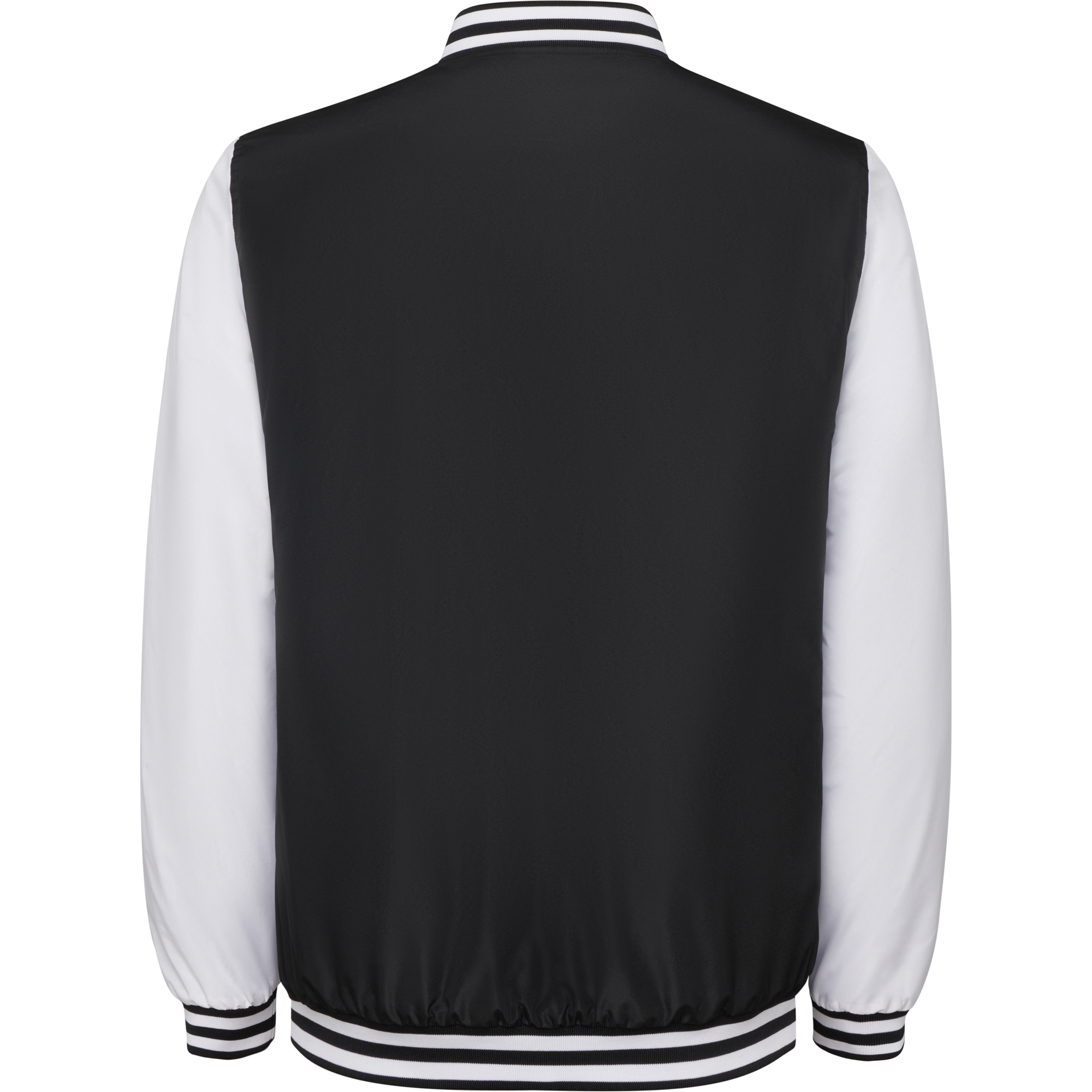 Jachetă unisex în două culori. Ușor căptușită. Buzunare laterale cu închidere cu fermoar și ornamente contrastante din material textil. Guler, manșete și tiv cu nervuri 1×1 cu linii contrastante combinate cu corpul. Nasturi cu capsă și finisaj contrastant din plastic. Punct de acces în spate pentru reprocesare.