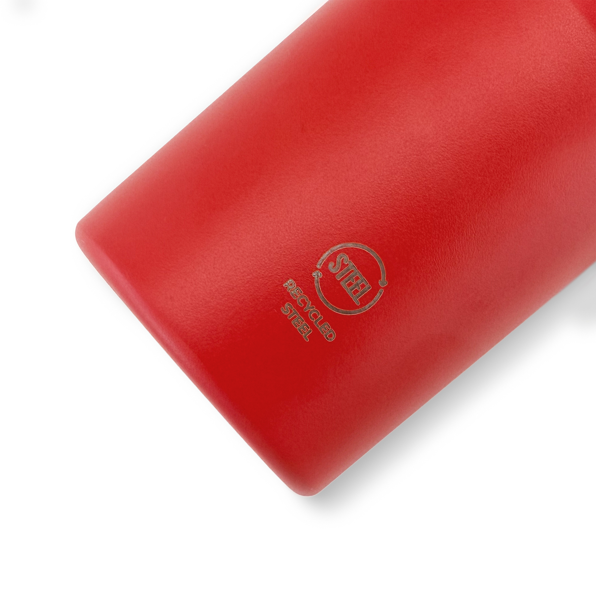 Cană termică cu două straturi din oțel inoxidabil reciclat 304. Capac cu sistem de închidere prin înșurubare și cu pai. Capacitate: 870 ml. Mod de prezentare: în cutie cu model.