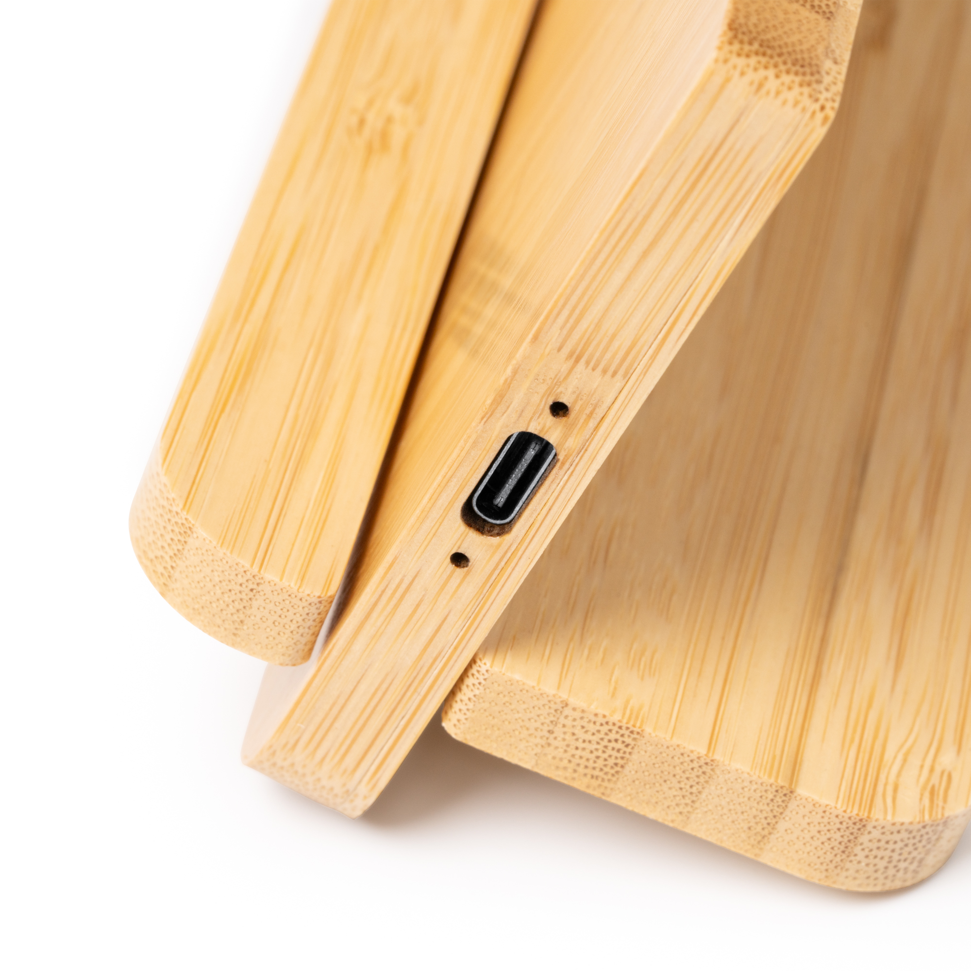 Suportul încărcător 3 în 1, fabricat din bambus, oferă 15 W de putere pentru încărcarea smartphone-urilor, ceasurilor inteligente și căștilor wireless. Cu intrare Type-C și cablu inclus, este soluția perfectă pentru a vă menține toate dispozitivele încărcate și organizate. Designul său elegant și sustenabil, realizat din bambus, îl face o alegere ideală pentru orice spațiu.