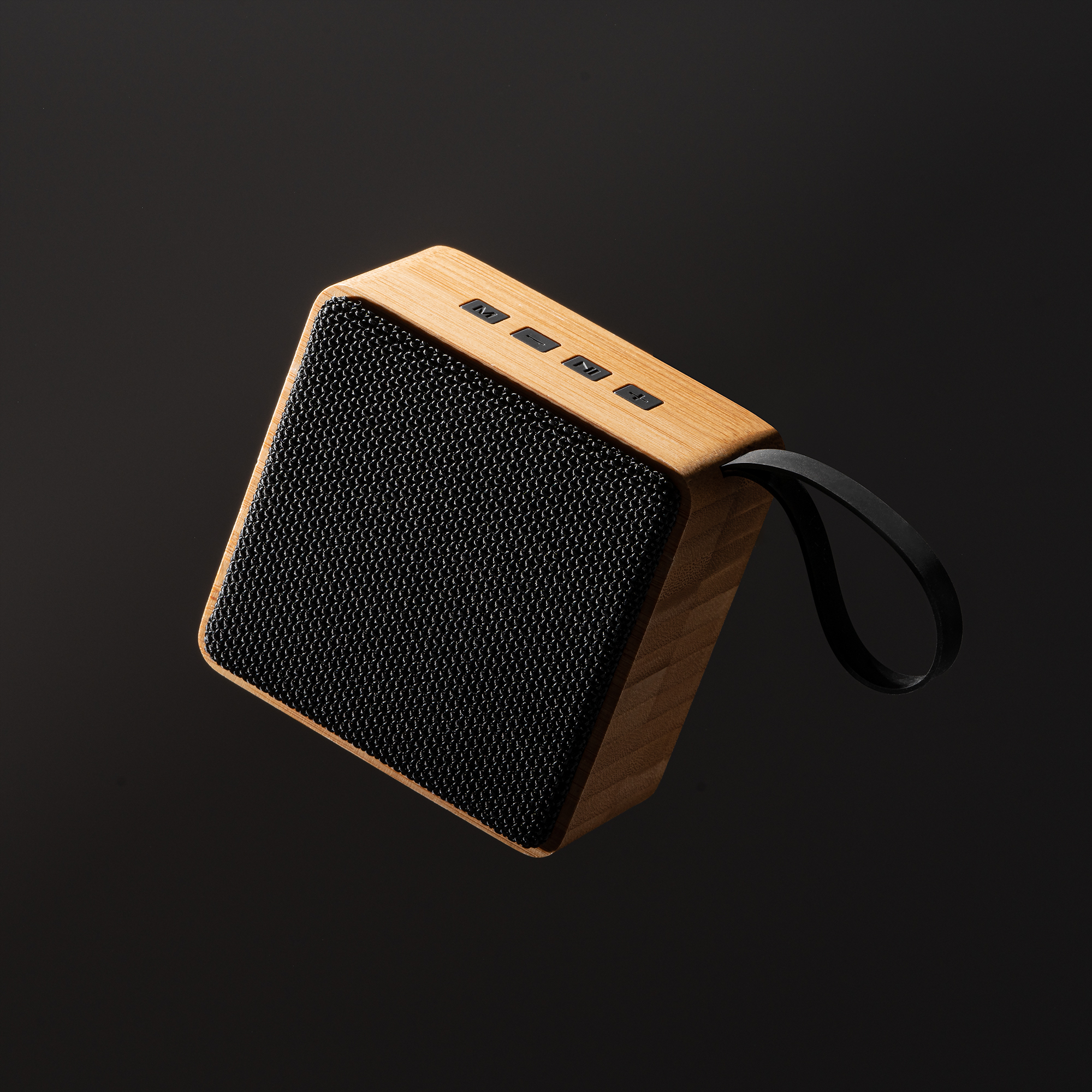 Difuzor wireless cu structură principală din bambus și material din polietilen tereftalat (PET). Capacitate 3W și baterie reîncărcabilă. Conexiune de tip C. Cablu inclus. Prezentare în cutie cu design eco.