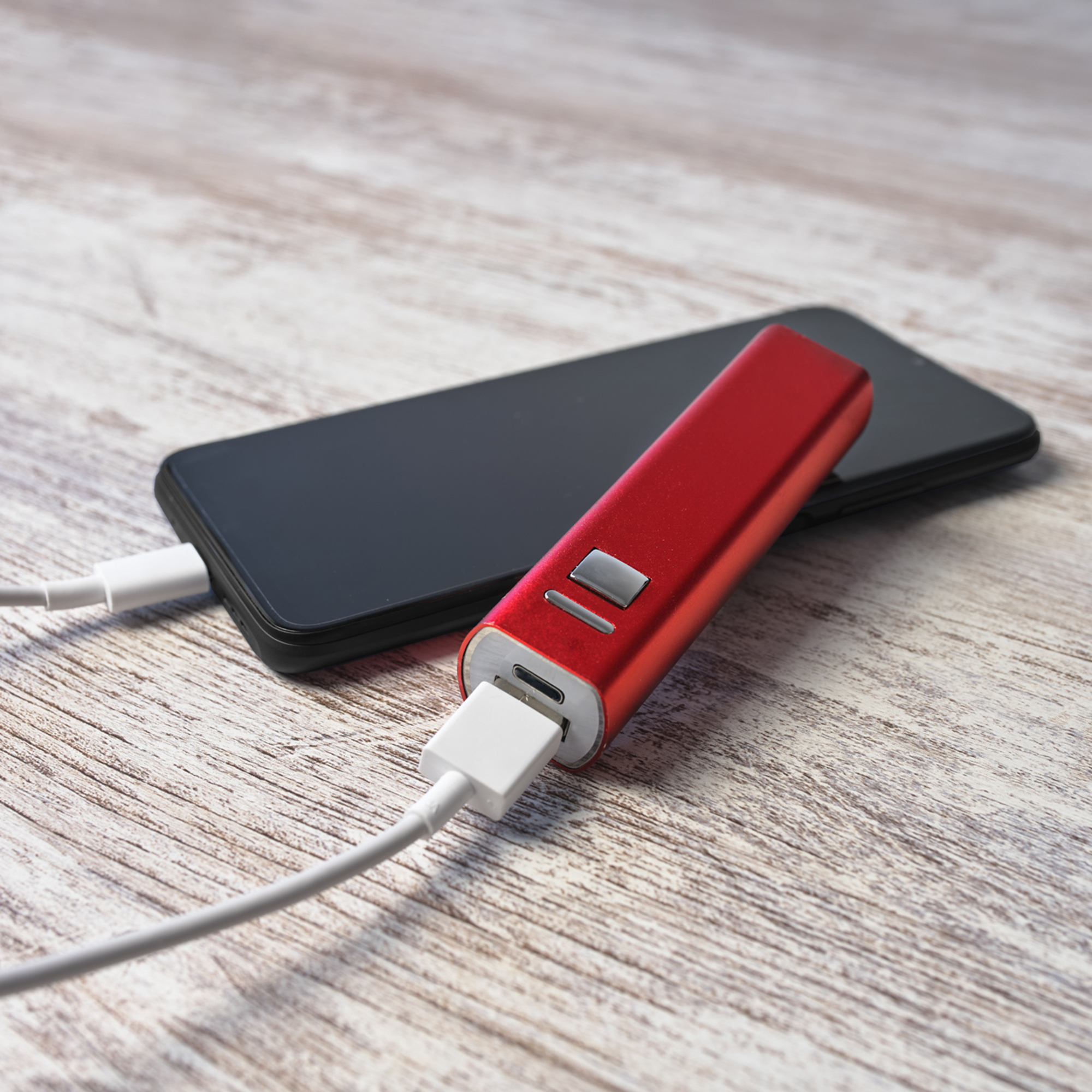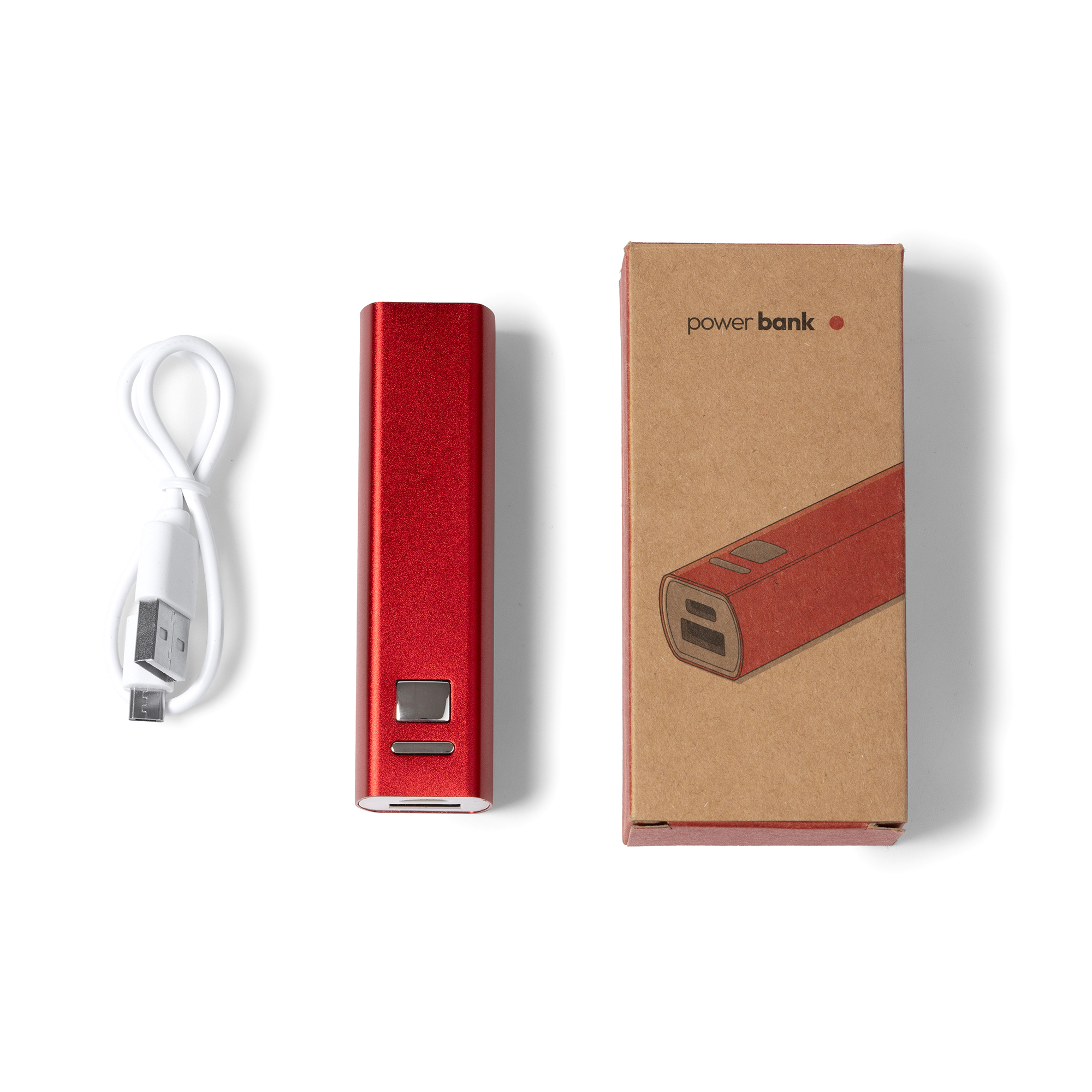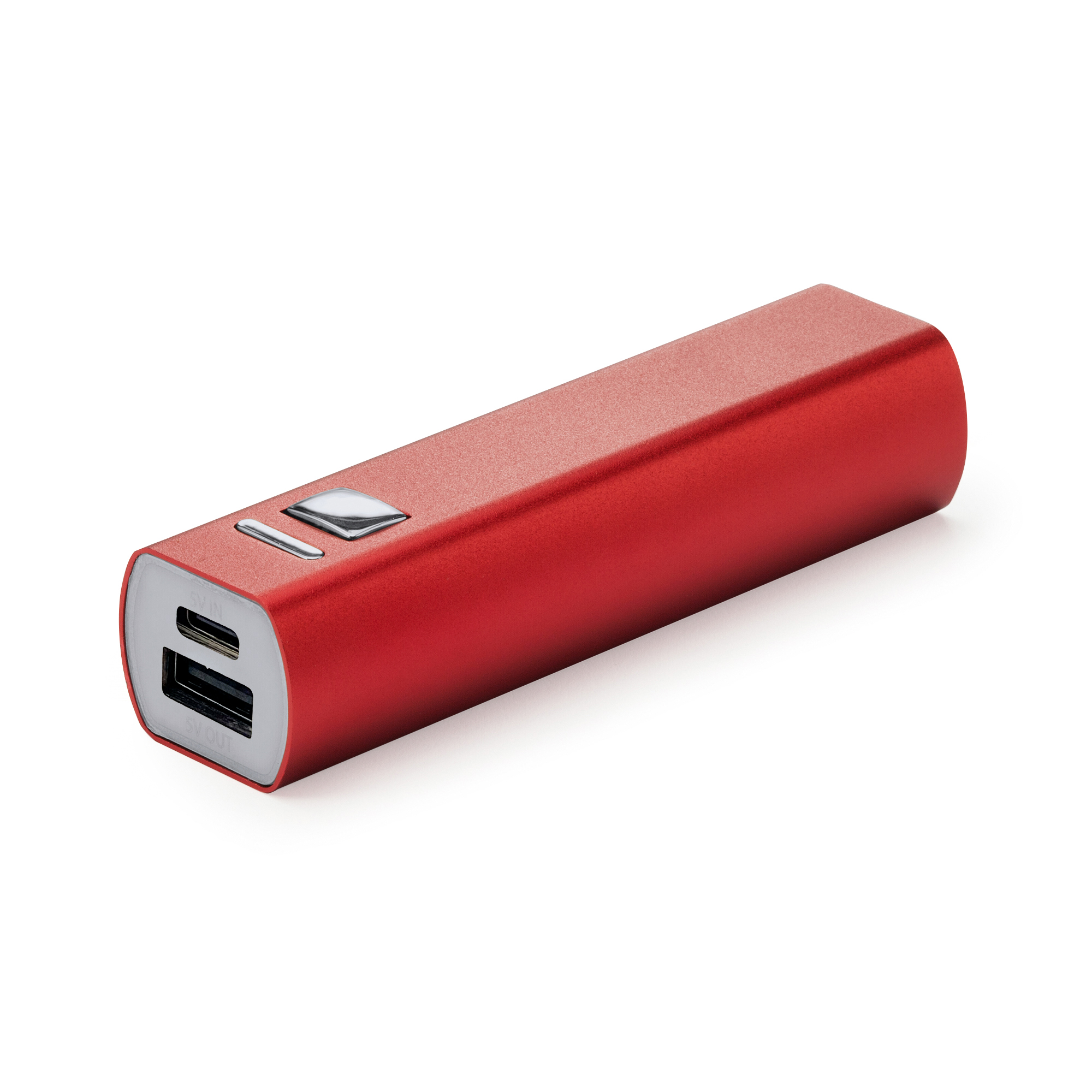 Baterie externă din aluminiu reciclat cu o capacitate de 2.600 mAh. Indicator de încărcare cu LED. Intrare și ieșire tip C. Mod de prezentare: în cutie cu model.