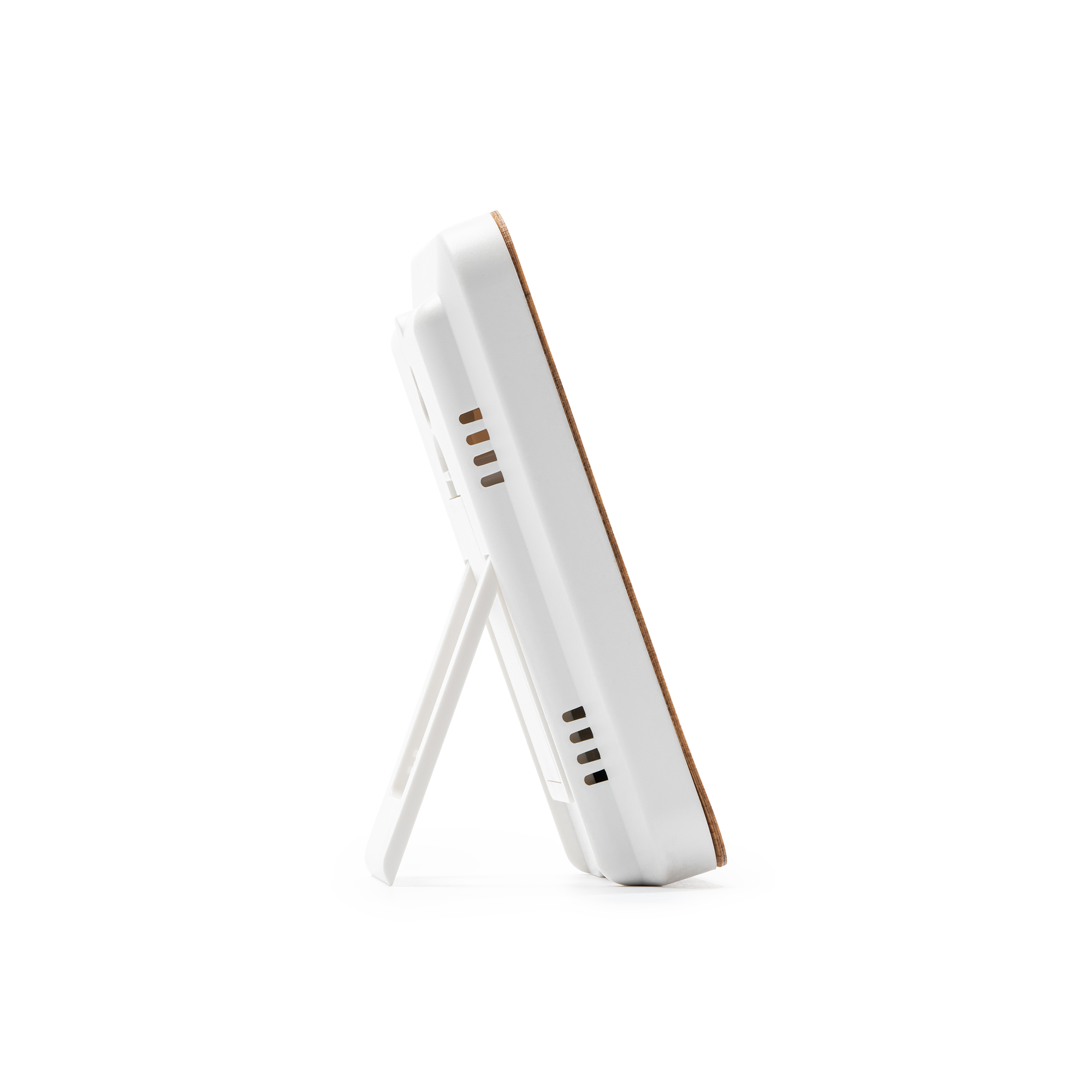 Stație meteorologică cu înveliș frontal din bambus. Funcție de urmărire cu senzori de temperatură și umiditate. Panou de control prin atingere. Înregistrarea temperaturii și a umidității maxime și minime. Funcționează cu 2 baterii tip AAA (nu sunt incluse).