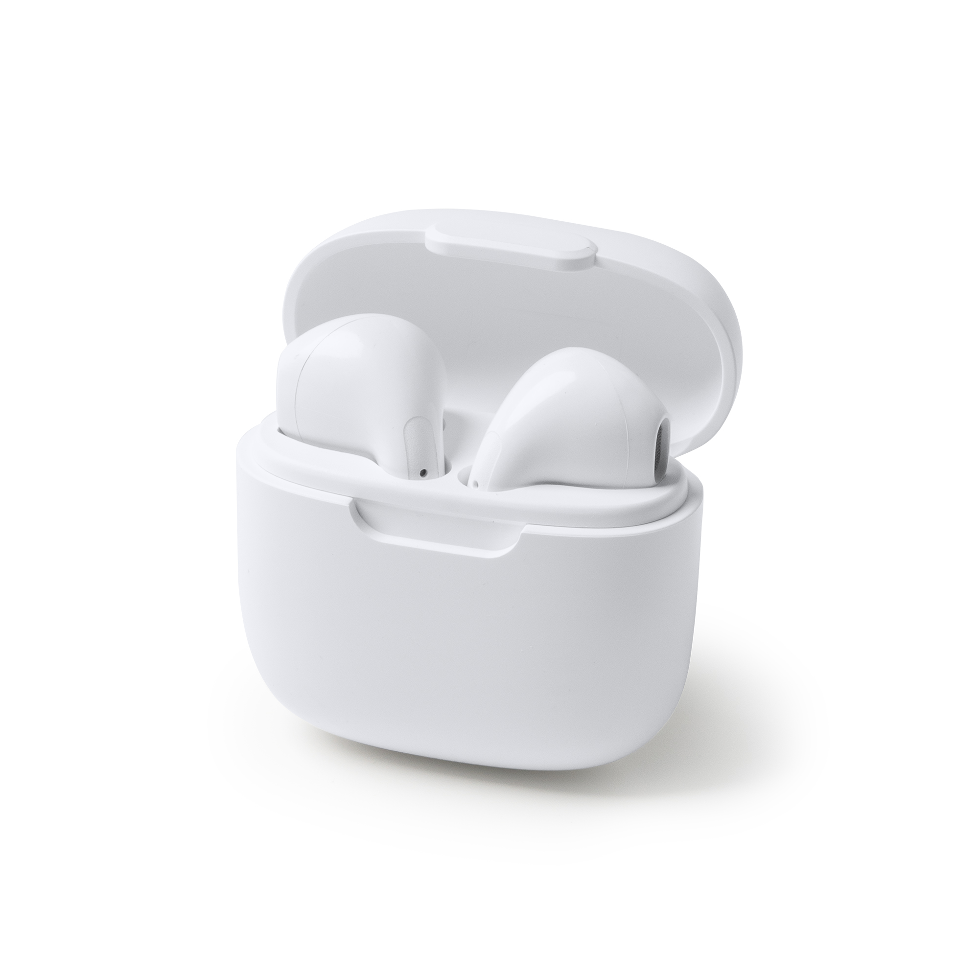 Căști wireless cu carcasă de încărcare. Panou de control încorporat cu tehnologie tactilă. Funcție handsfree. Baterie reîncărcabilă cu conexiune de tip C. Cablu inclus. Prezentare în cutie cu model.