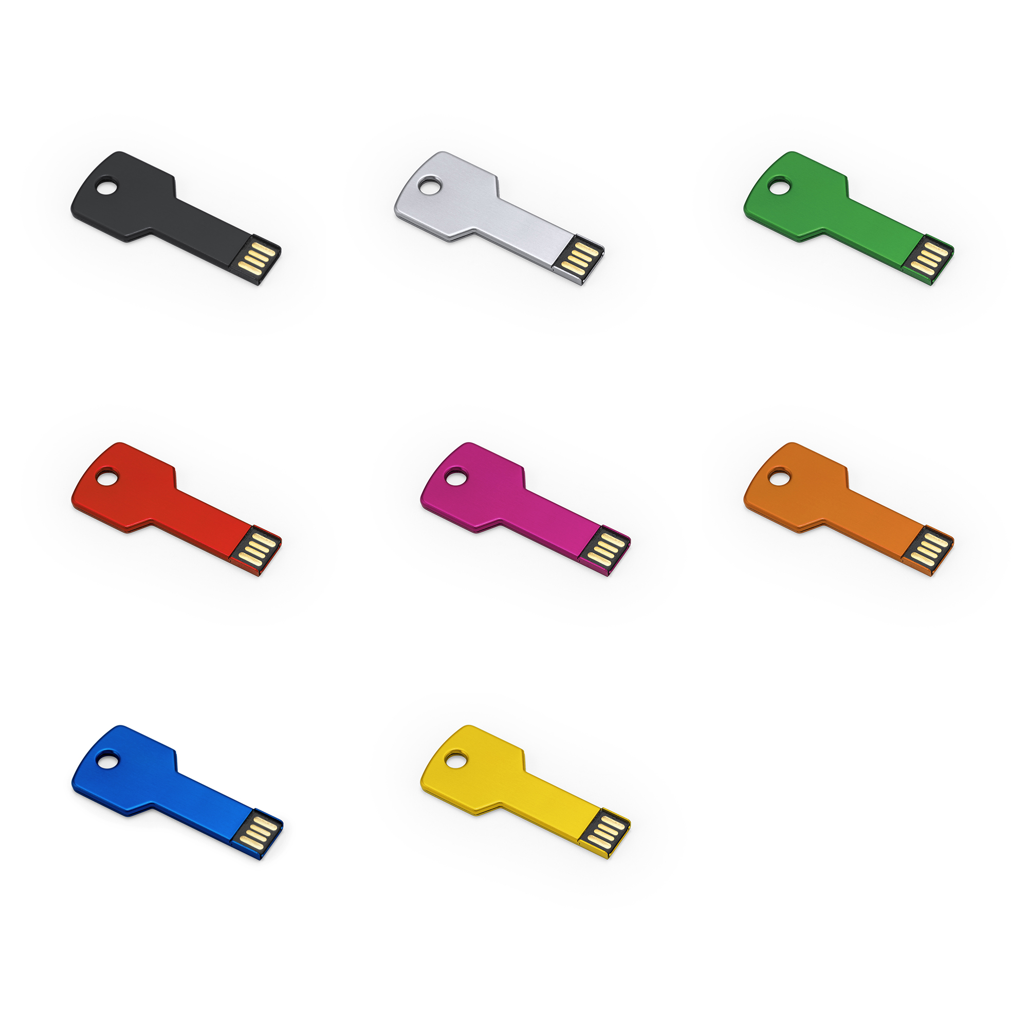 Memorie USB 2.0 din aluminiu cu design extra plat sub formă de cheie. Are o capacitate de 16 GB.