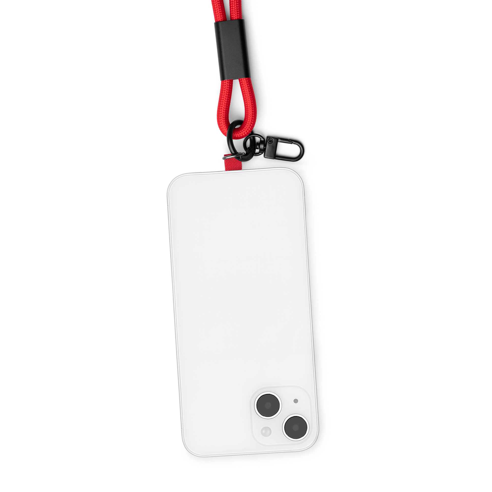 Șnur fabricat din nailon reciclat cu funcție de suport pentru smartphone și cablu de conectare de tip C la ambele capete. Cablul servește atât ca o conexiune de încărcare, cât și ca o conexiune de transfer de date. Prezintă o carabină mică la un capăt pentru transportul altor obiecte.