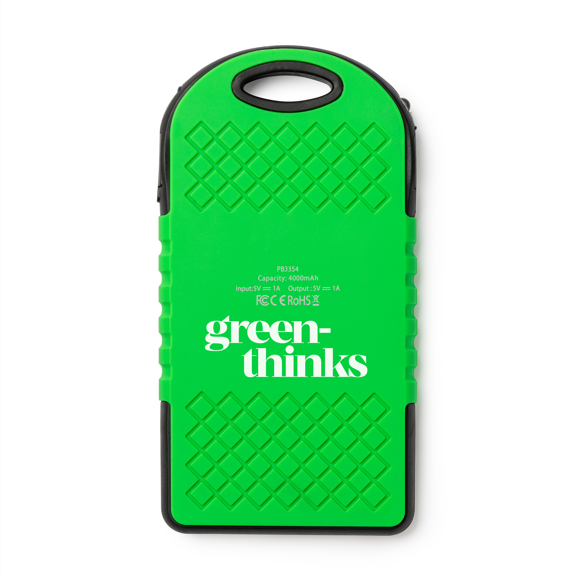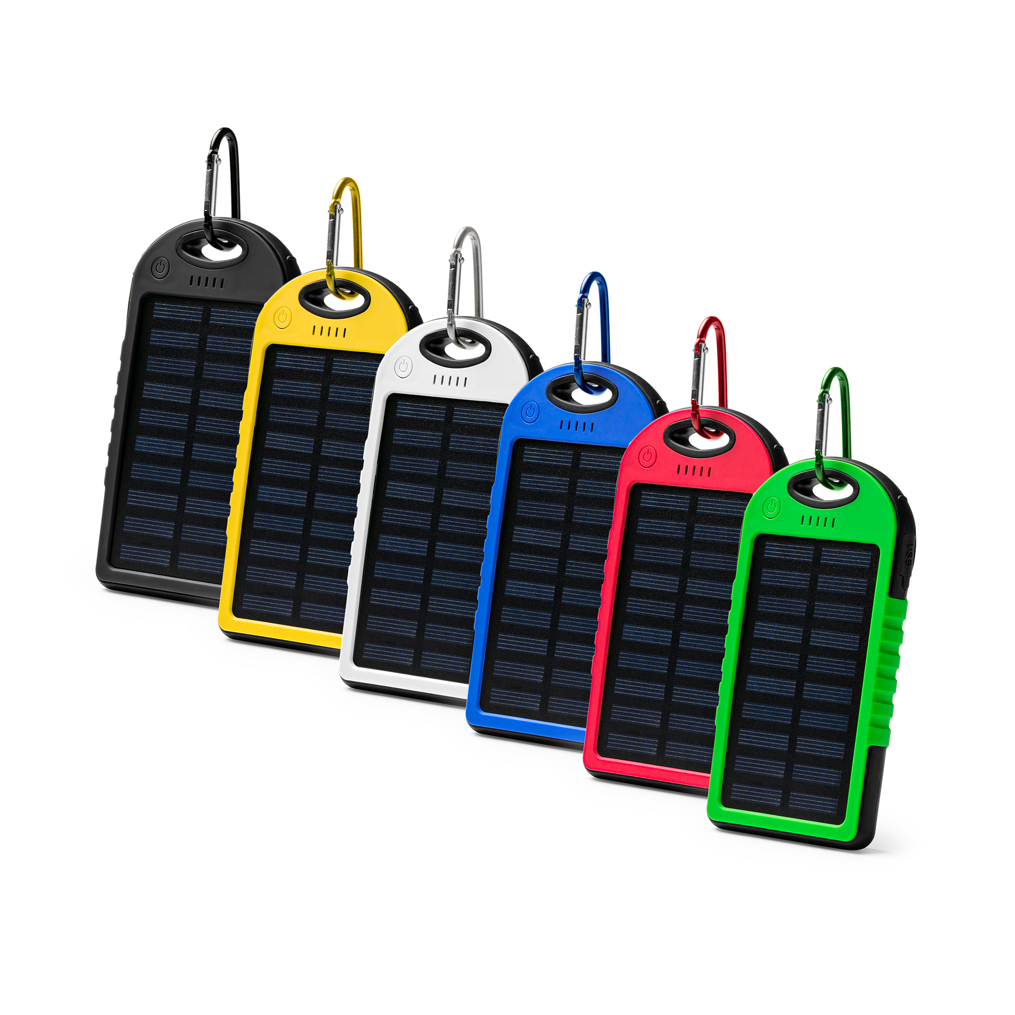 Baterie solară externă, rezistentă la stropi de apă și cu capacitate mare de încărcare. 4000 mAh. Indicator de încărcare cu LED și lumină. Ieșire curent 5W/2,1A.