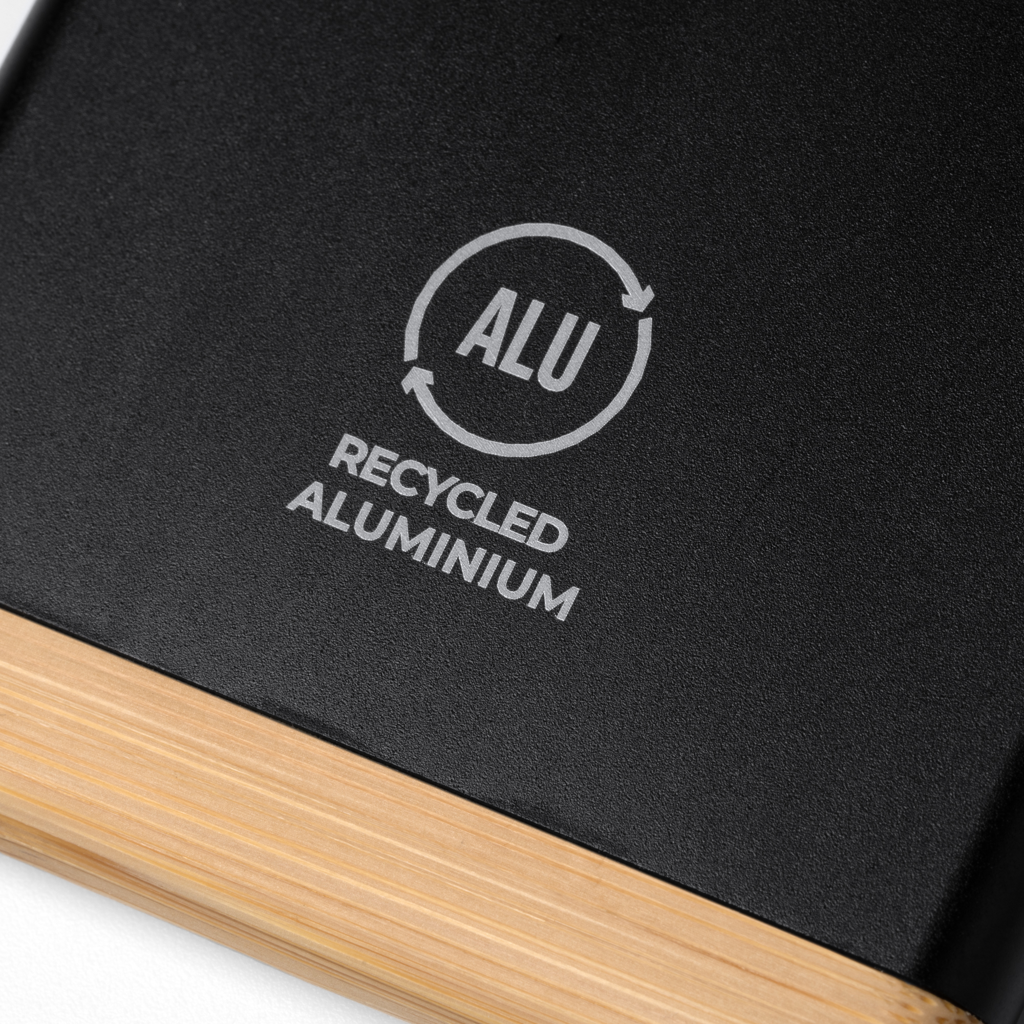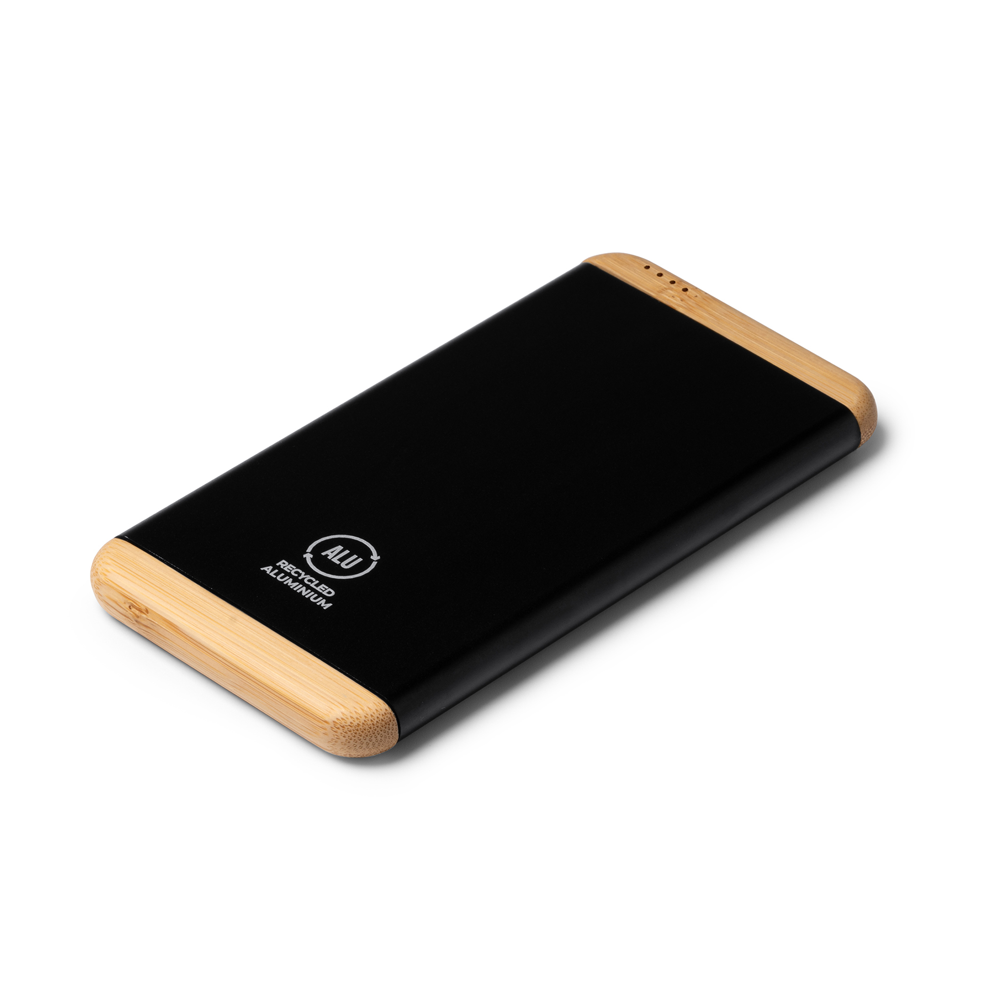 Bateria externă de 5.000 mAh combină un corp din aluminiu reciclat și bambus, oferind o soluție de încărcare durabilă și eficientă. Dispune de intrare și ieșire USB și Type-C, cu un cablu corespunzător inclus. Ideală pentru a vă menține dispozitivele încărcate în timpul deplasărilor, aceasta vine într-o carcasă cu design ecologic, subliniind angajamentul său față de mediu și funcționalitatea modernă.