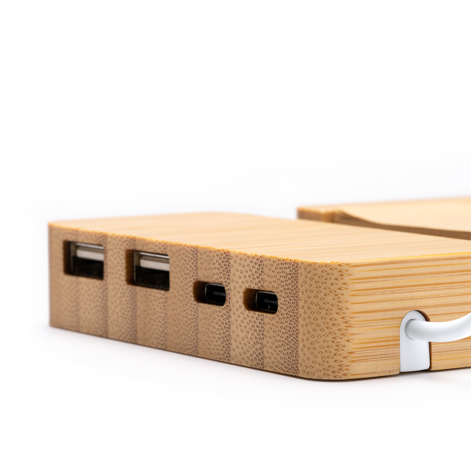 Încărcătorul wireless din bambus reprezintă o soluție ecologică și convenabilă pentru încărcarea fără fir a dispozitivelor.