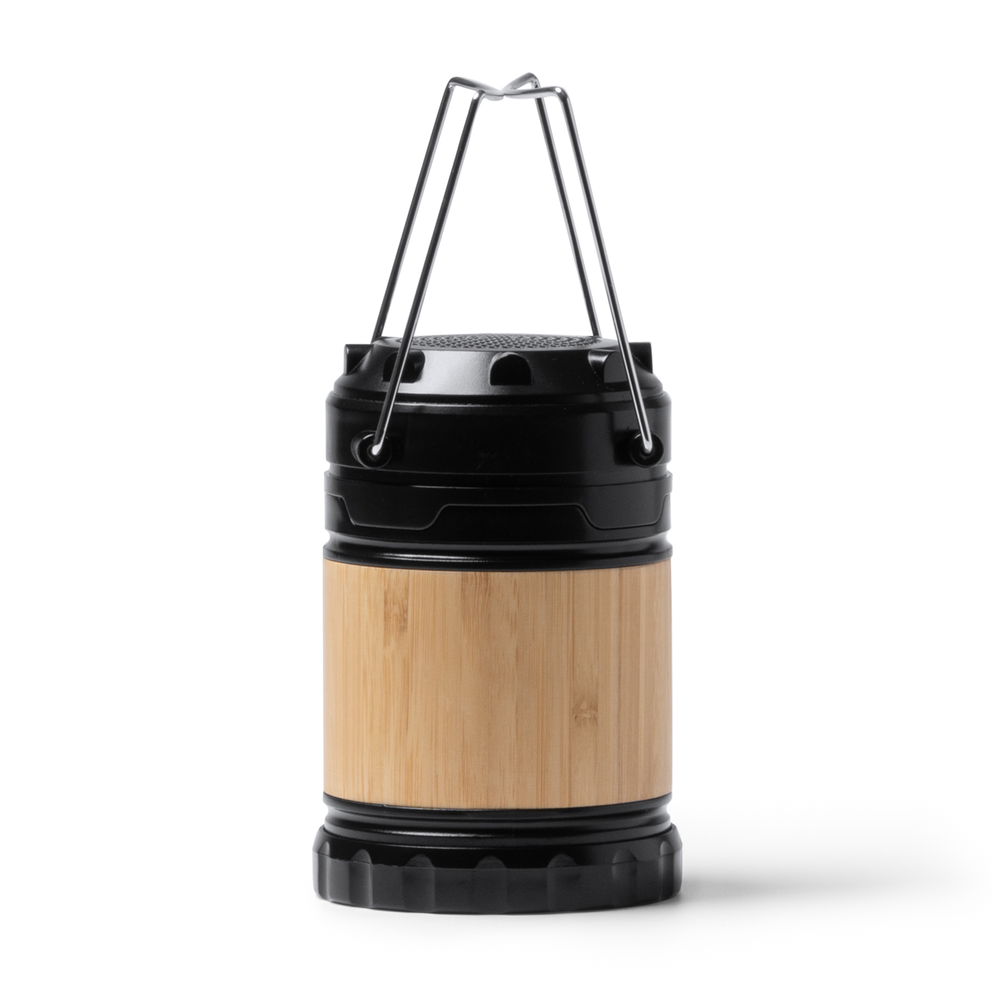 Difuzor wireless de 3 W cu funcție de lampă de 230 lumeni și structură principală din bambus. 3 baterii AA incluse. Mânere practice de transport. Cablu de tip C inclus. Mod de prezentare: în cutie cu model eco.