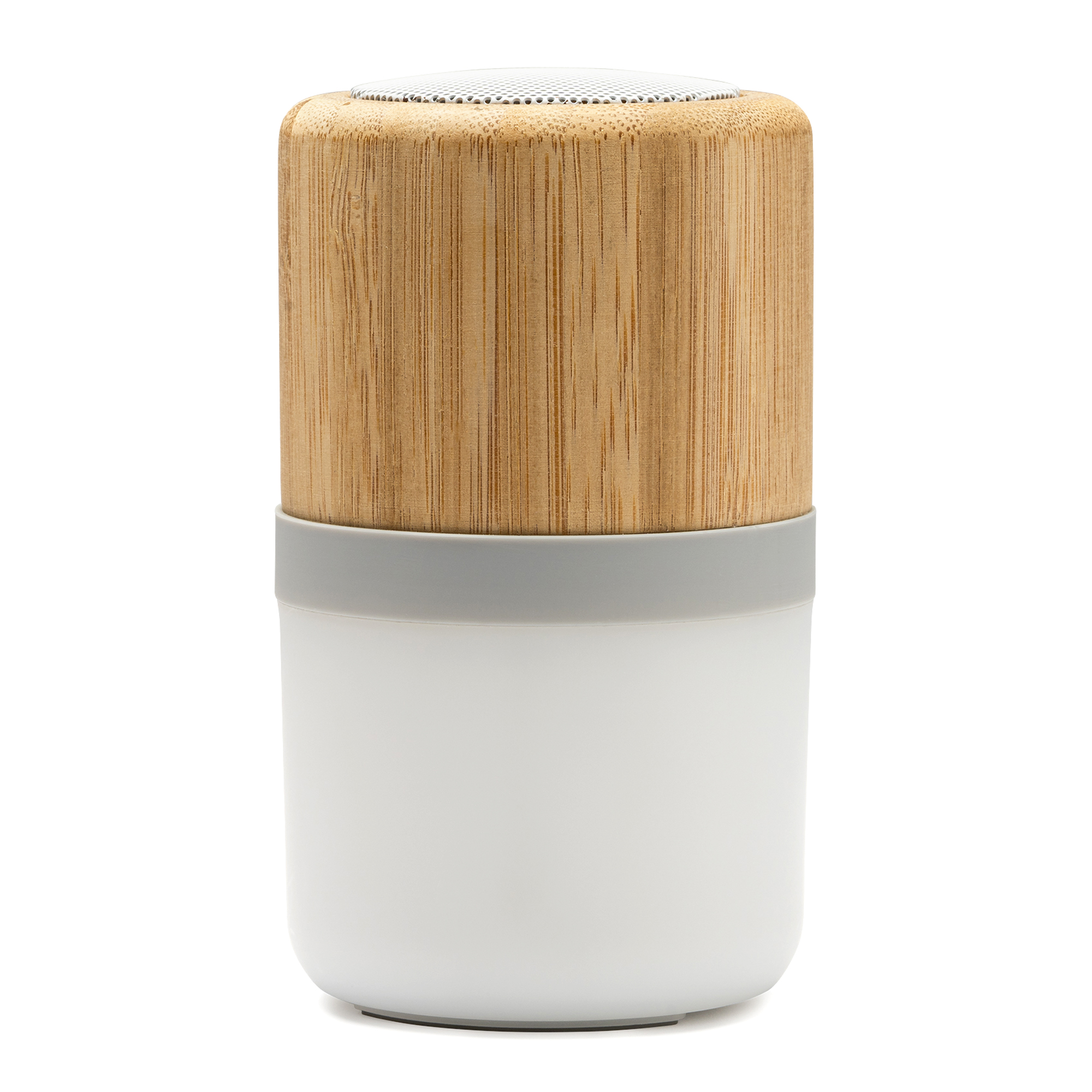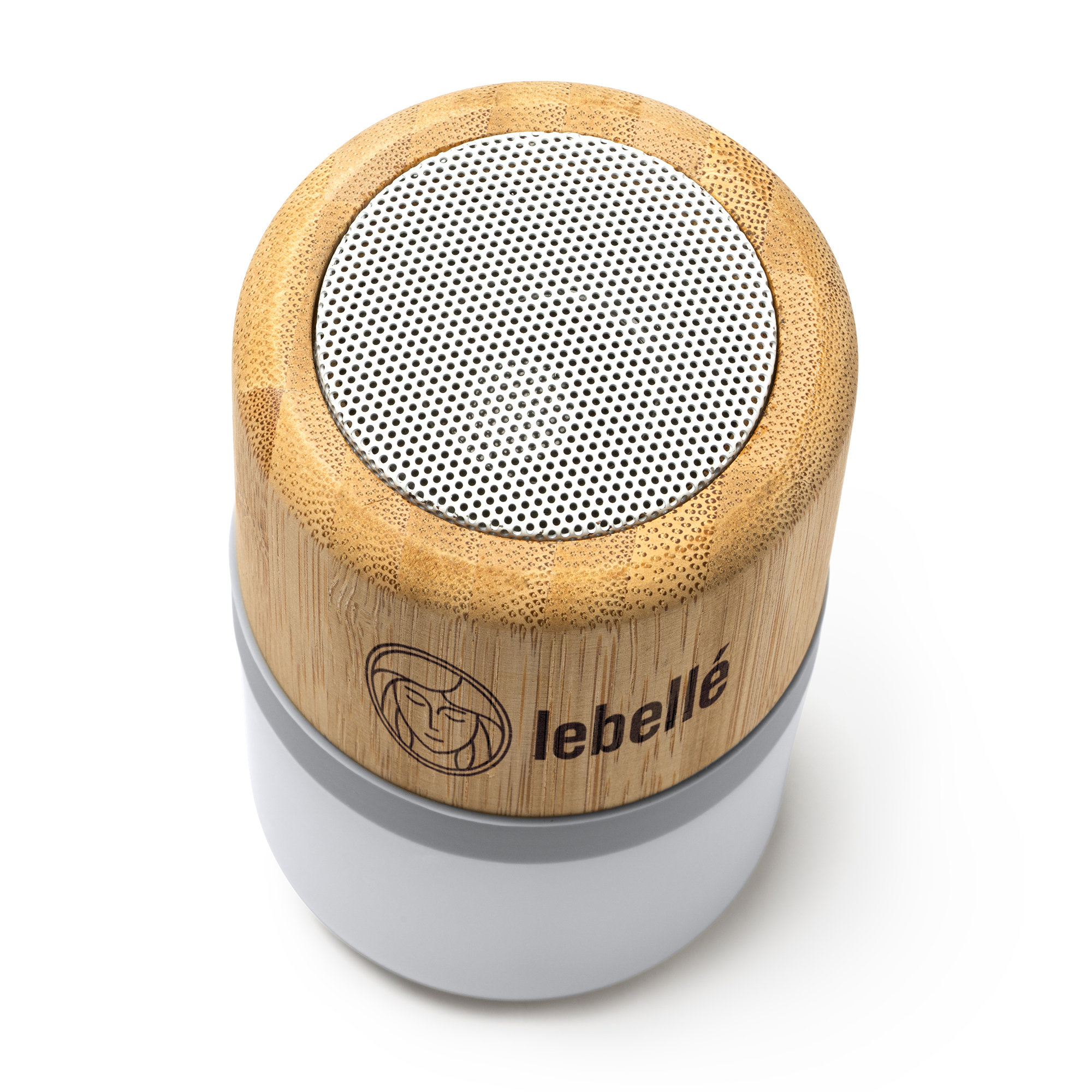 Difuzor wireless fantastic, cu corp din bambus și lumină LED multicoloră, cu 4 moduri. Putere de alimentare de 3 W și baterie reîncărcabilă. Cablu de încărcare inclus.