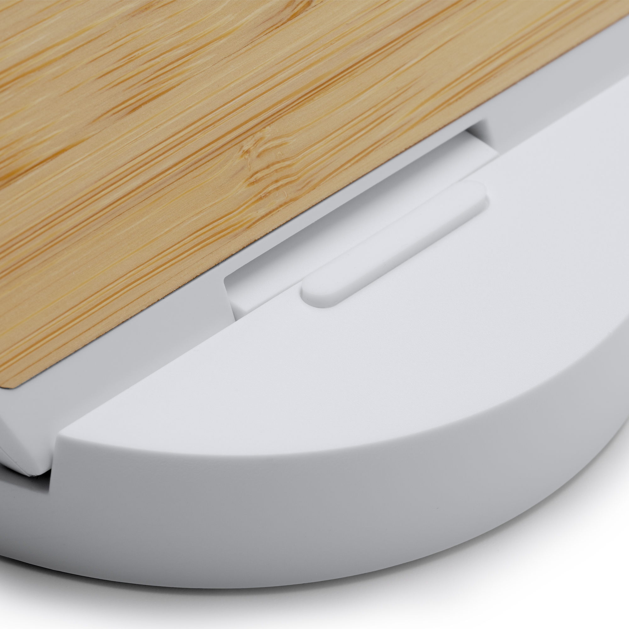 Încărcătorul wireless de 10 W cu corp din bambus și ABS reprezintă o opțiune elegantă și funcțională pentru încărcarea convenabilă a smartphone-ului. Designul său combină aspectul natural și cald al bambusului cu durabilitatea ABS-ului.