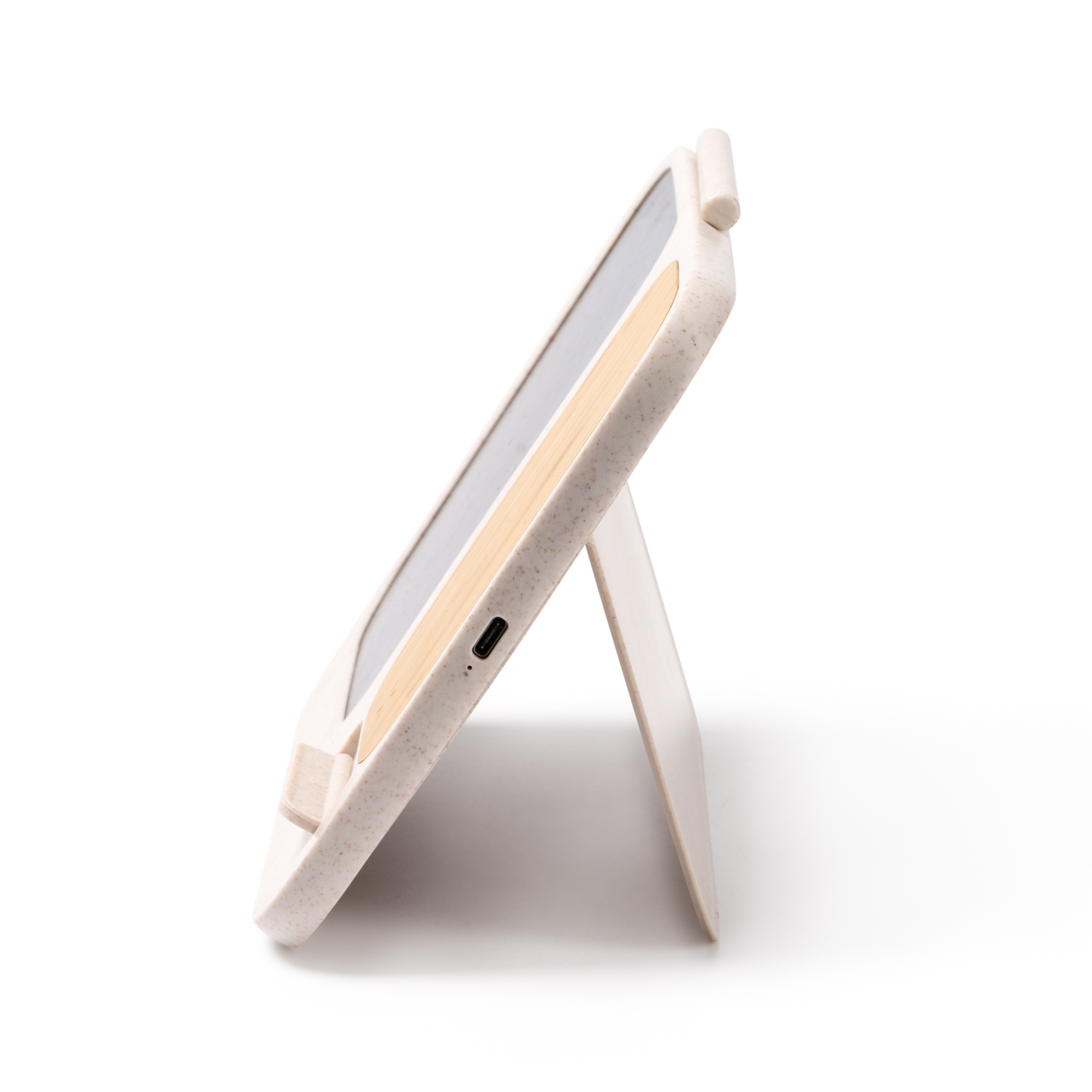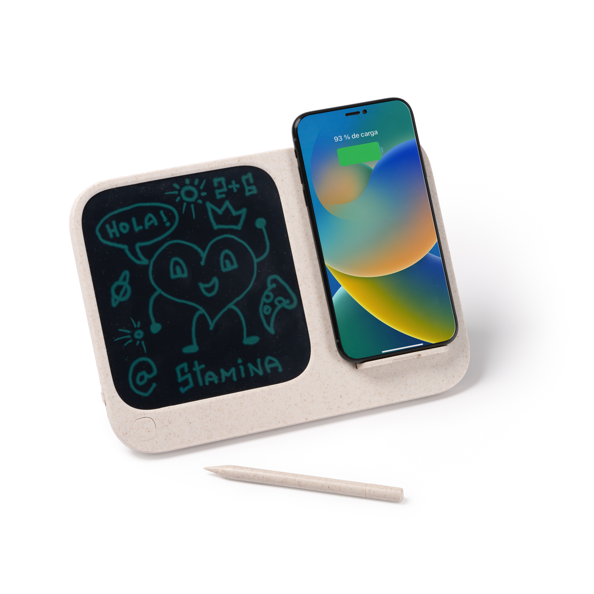 Tablă digitală de 6” cu încărcător wireless din bambus de 15W. Include stylus. Cablu de tip C și baterii incluse. Prezentare în cutie cu design ecologic.