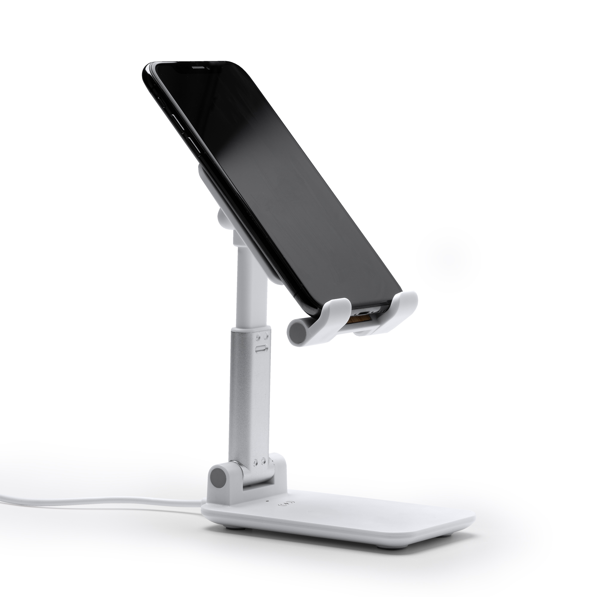 Suportul este reglabil, permițându-vă să așezați smartphone-ul în unghiul cel mai confortabil și potrivit pentru dumneavoastră. Puteți vizualiza notificările, videoclipurile sau puteți efectua apeluri video în timp ce dispozitivul dumneavoastră se încarcă fără fir.