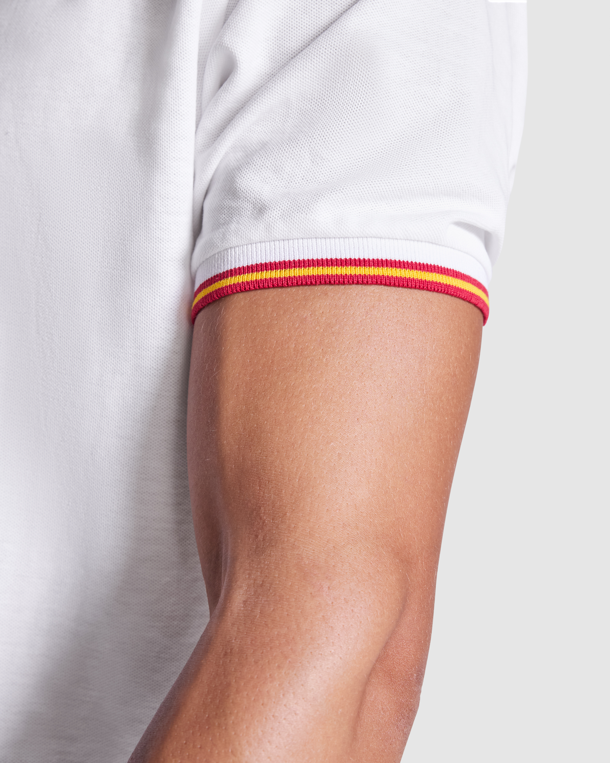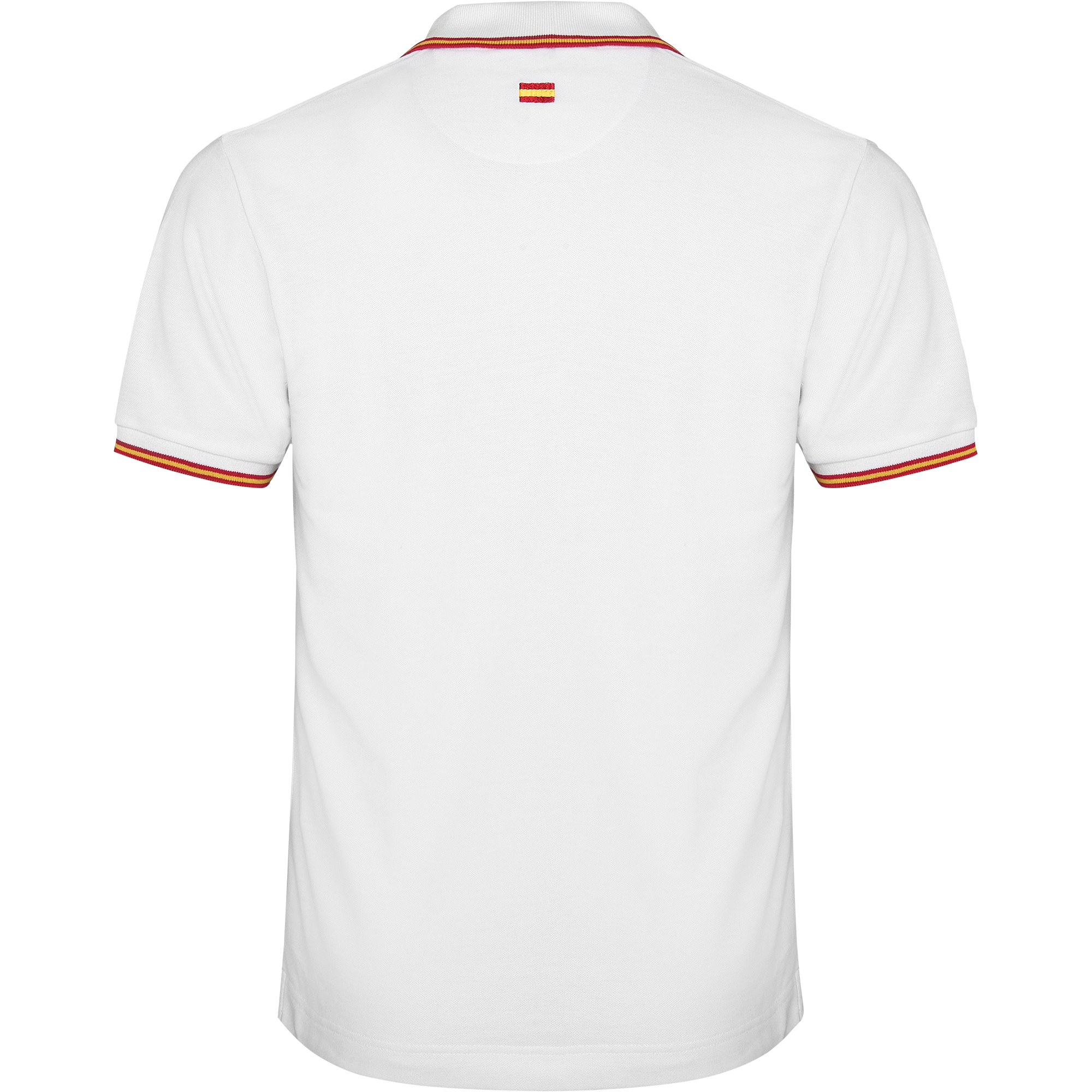 Tricou polo cu mânecă scurtă și tratament anti-pilling. Cusătură piqué. Guler și mâneci cu nervuri 1×1 cu contrast de culoare. Bandă de închidere cu 3 nasturi. Cu bandă asortată întărită pentru acoperirea cusăturii la guler și suport interior. Detaliu cu steag brodat în partea din spate. Buzunar, opțional. Se poate spăla la 60 °C.