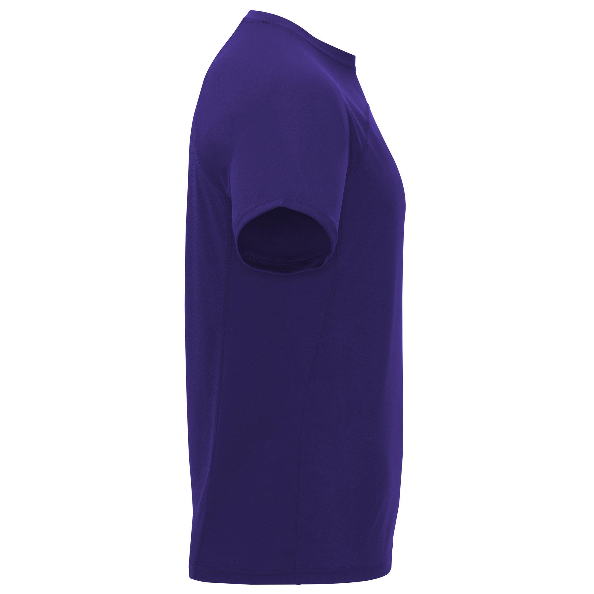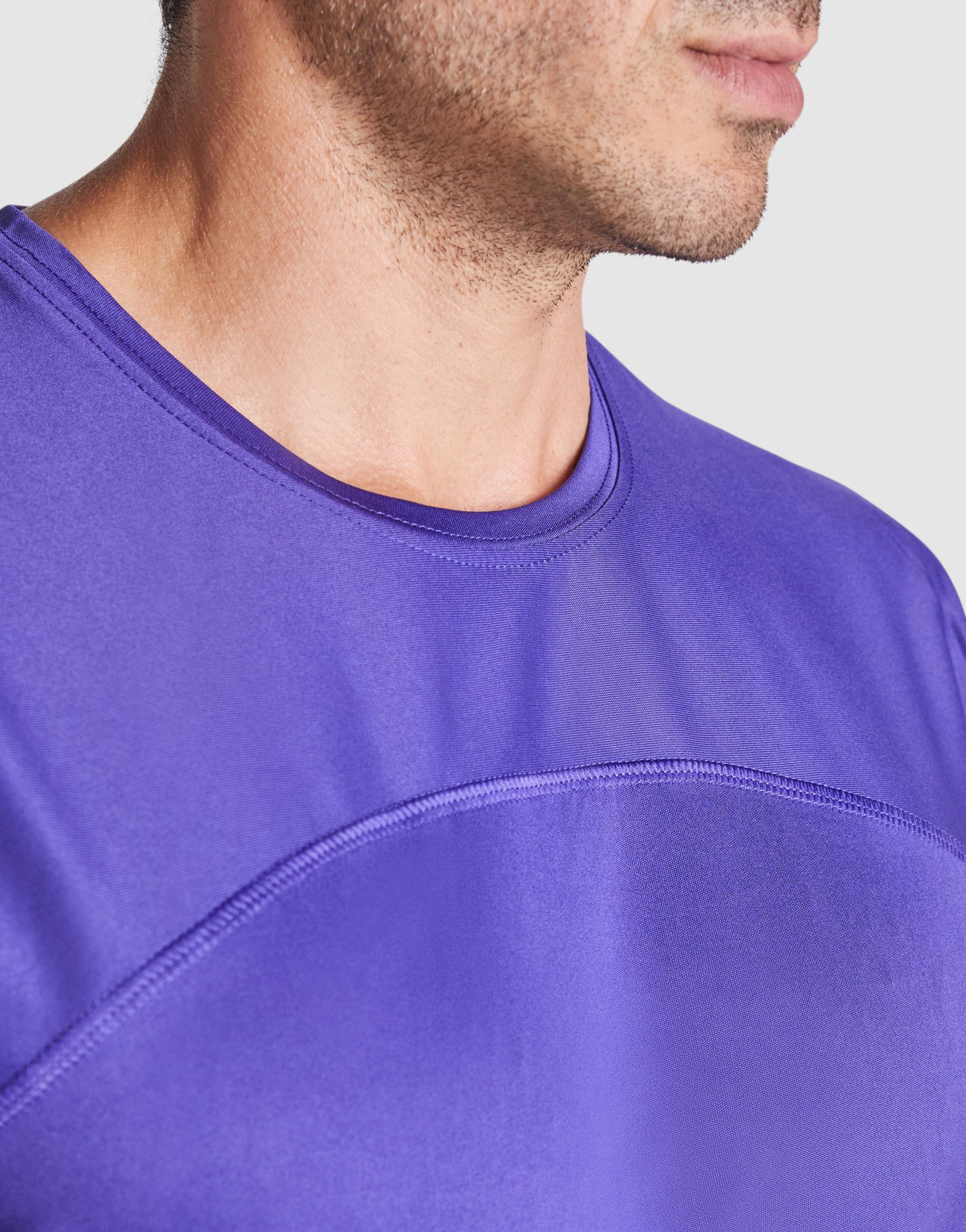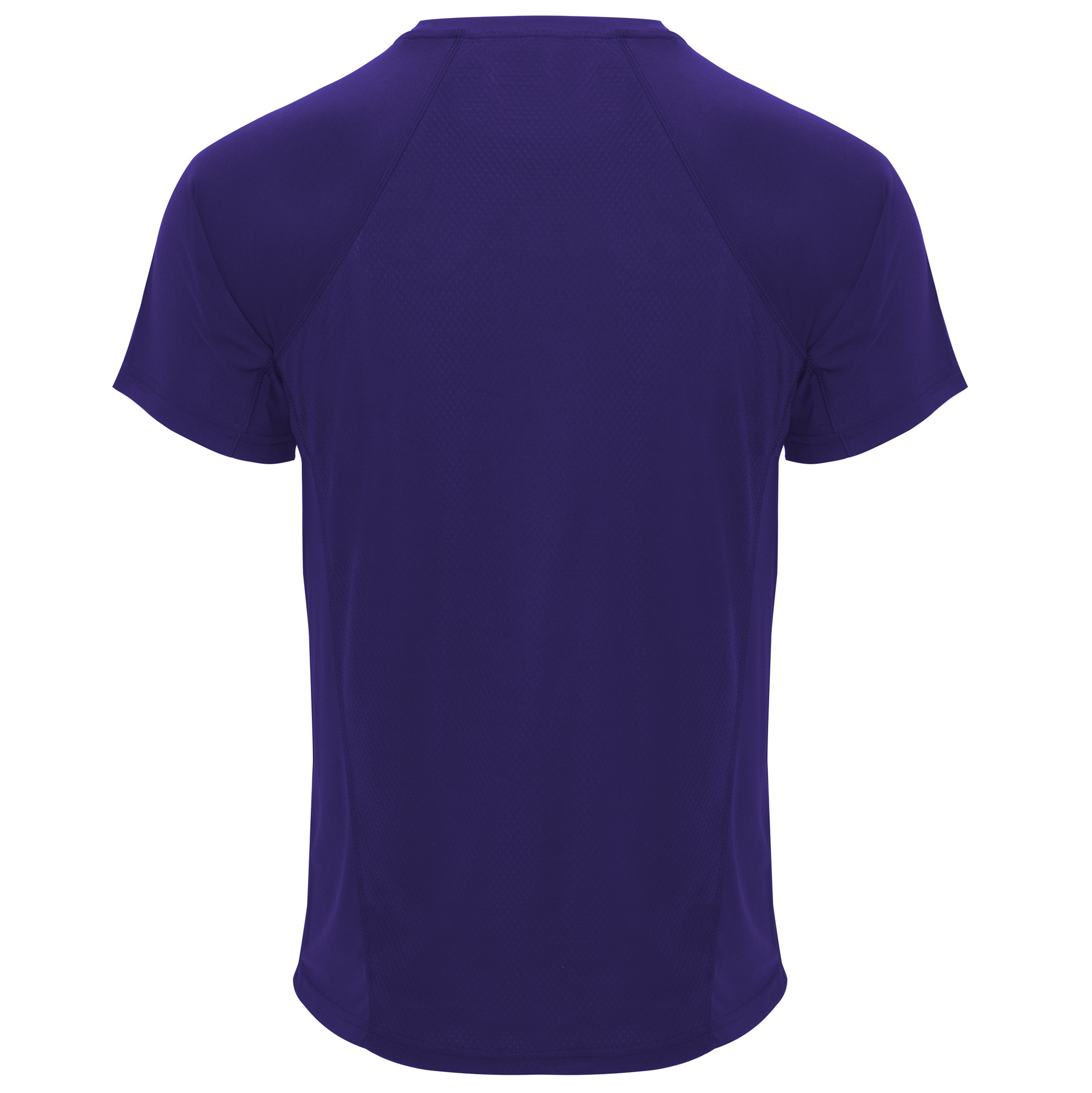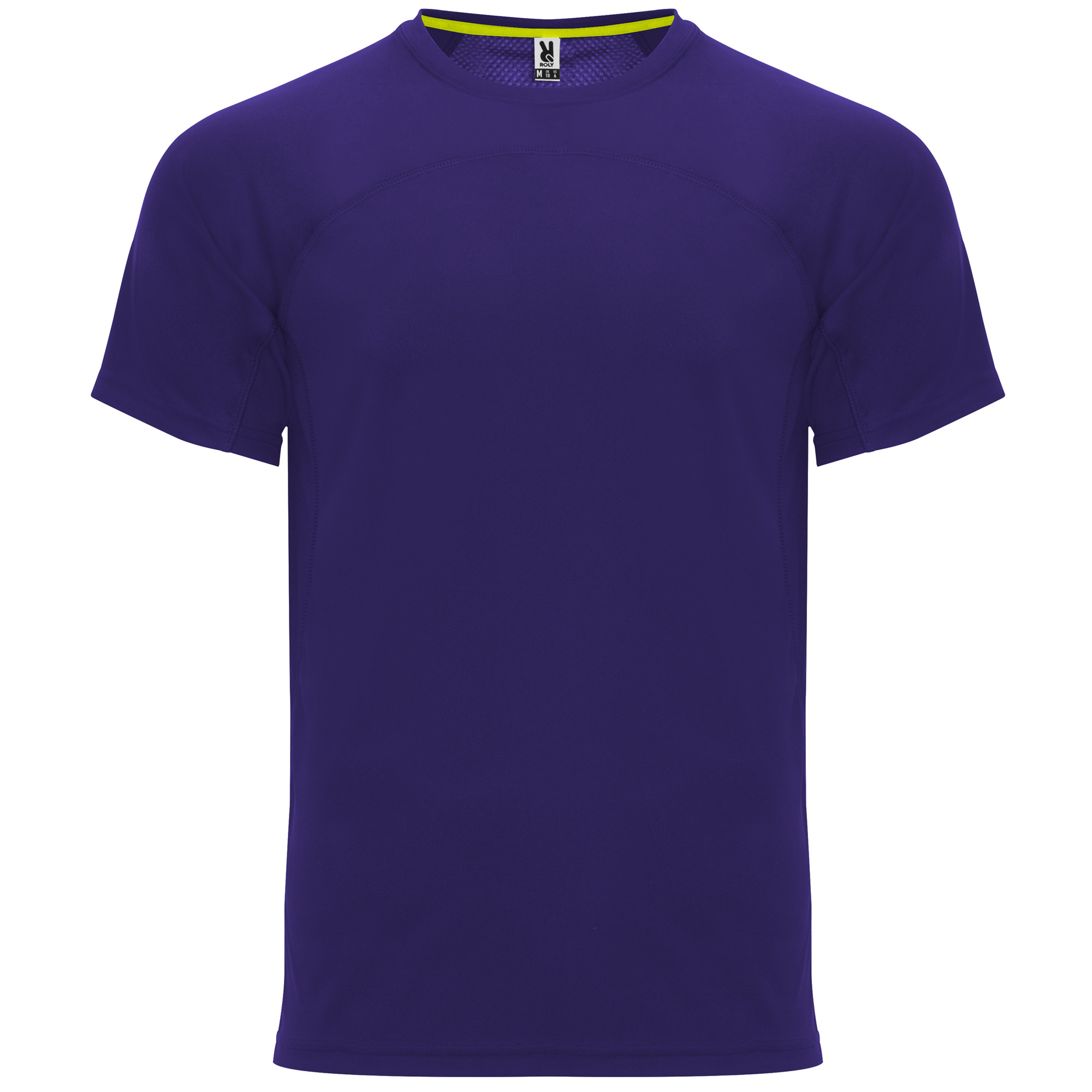 Tricou tehnic unisex respirabil cu mânecă raglan. Combinație de materiale. Decolteu rotund din material asortat. Aceeași cusătură din material textil galben fluorescent.
