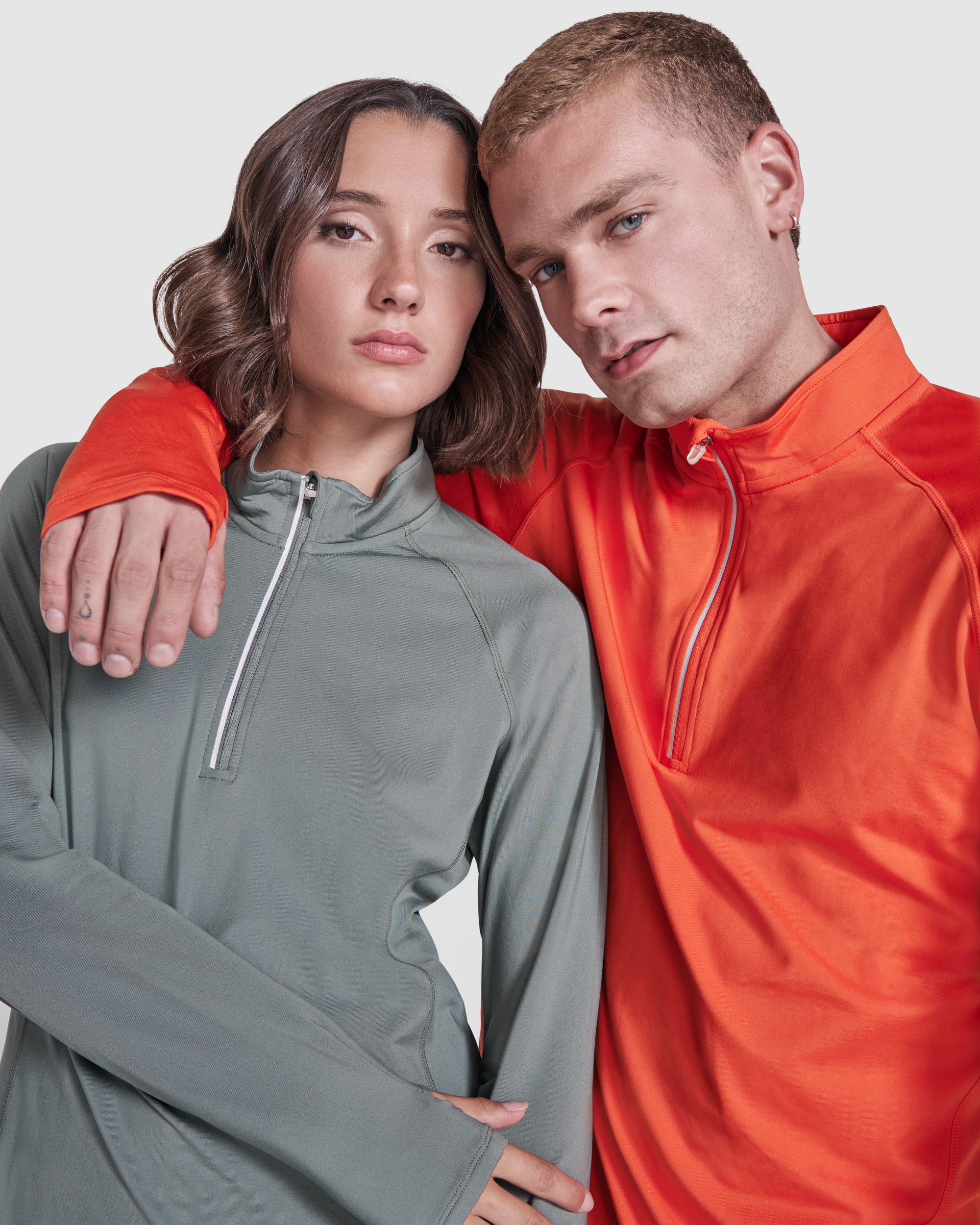 Hanorac tehnic din material periat, cu croială mulată, mâneci raglan și design cu fermoar până la jumătate inversat, cu detaliu reflectorizant. Guler interior cu bandă. Manșete cu deschidere pentru degetul mare. Detalii reflectorizante în partea din spate. Margine prelungită în partea din spate. Certificat GRS.